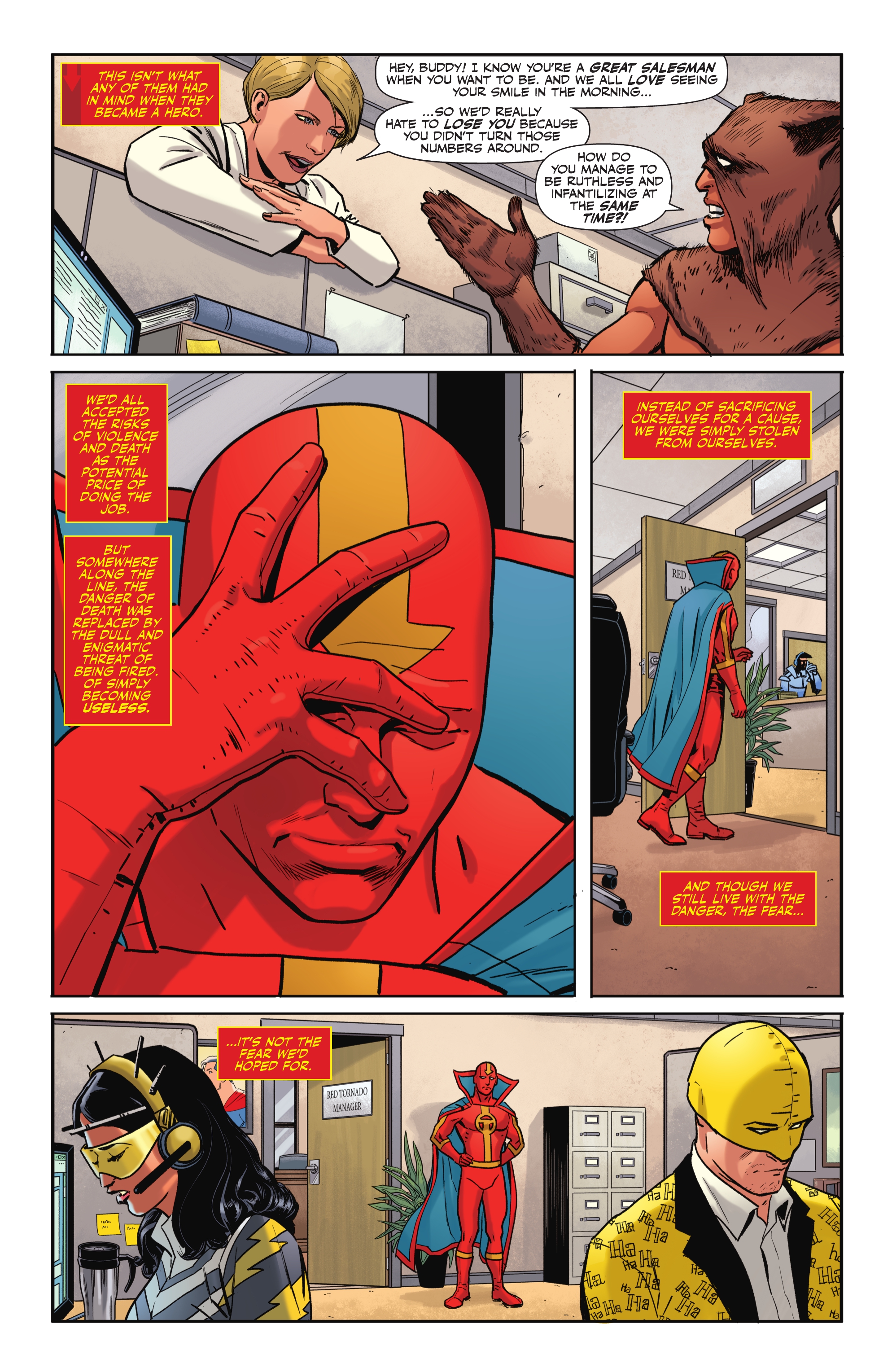 Instead, we get One-Star Squadron, where Power Girl becomes part of the online service Heroz4u. The entire series depicts her as a smug, cold, pragmatic bitch who believes money is more important than superhero work and is solely focused on improving the company. She’s shown to care more about work efficiency and making a profit than saving others, all because she decided- for some godforsaken reason- to take advice from known supervillain and corrupt businessman Maxwell Lord.