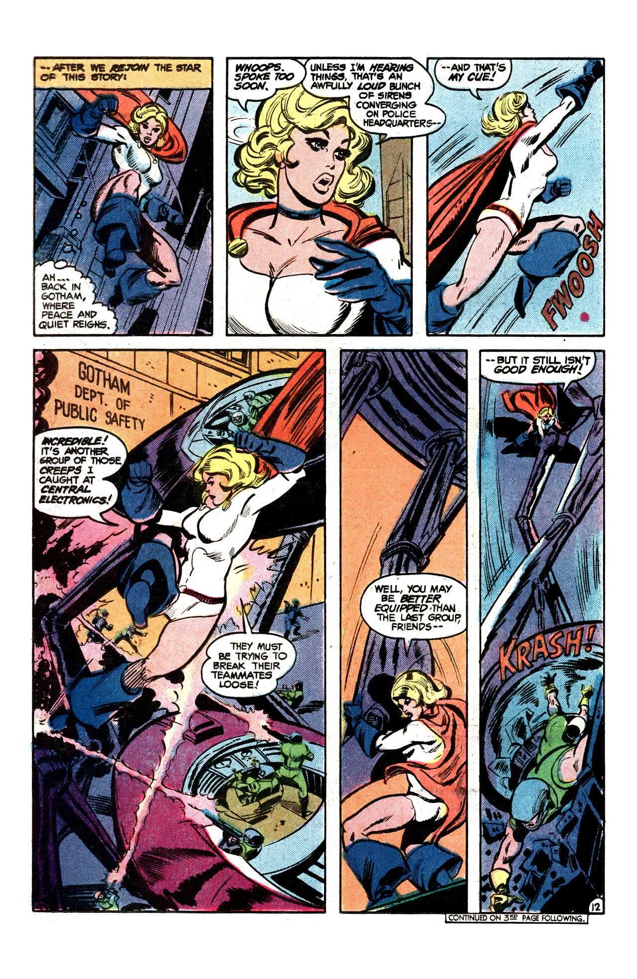 As she grew more accustomed to life on Earth, Kara learned of her cousin’s heroic reputation and decided to follow in his footsteps, albeit against his wishes. Donning her own costume, Power Girl made her debut by helping the Justice Society of America contain an active volcano in Peking, China. She then joined them alongside Robin and Star-Spangled Kid to defeat Brain Wave and Per Degaton’s schemes for world domination.