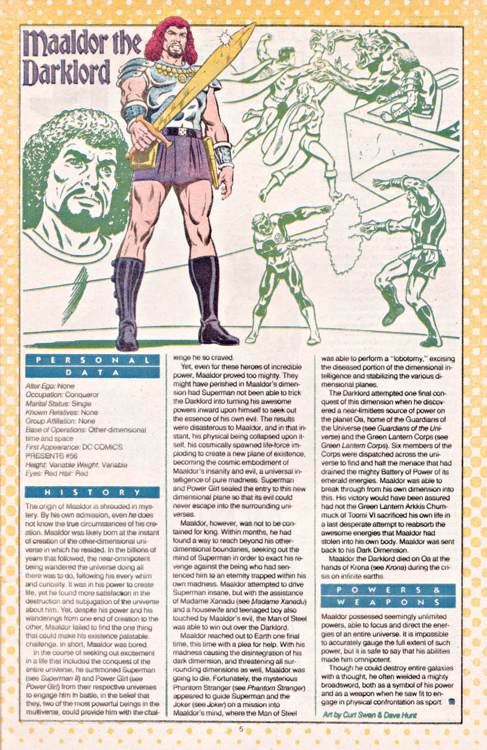 - Fought the universe conqueror Maaldor the Darklord with Earth-One Superman