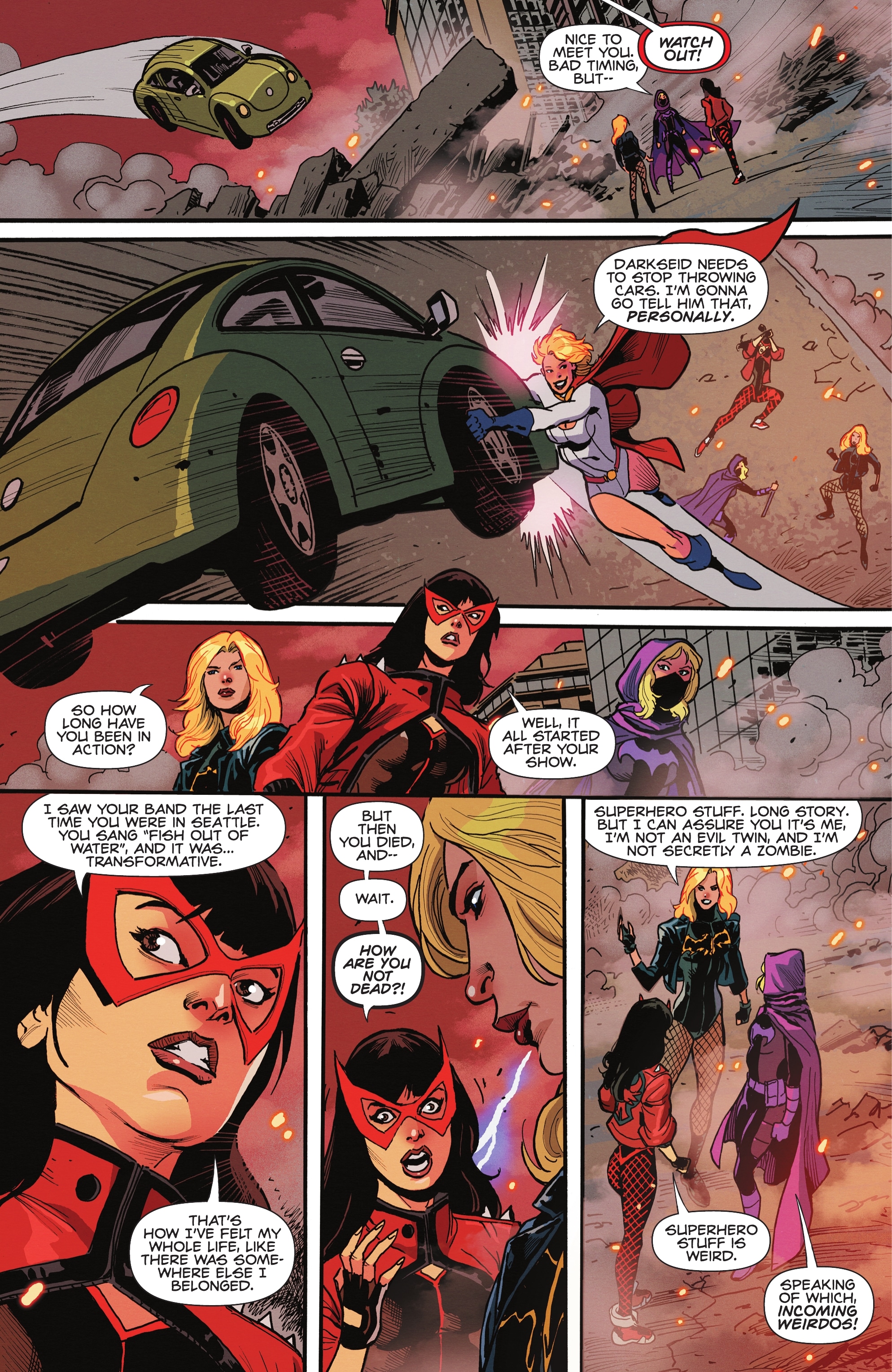 When she finally gets a new solo series, she’s treated like a rookie superhero, complete with Superman scolding her for endangering innocent lives and having to receive a pep talk to encourage her to do better. And now all of a sudden she’s scared of the Symbioship and worries that she might not be a “real girl.”