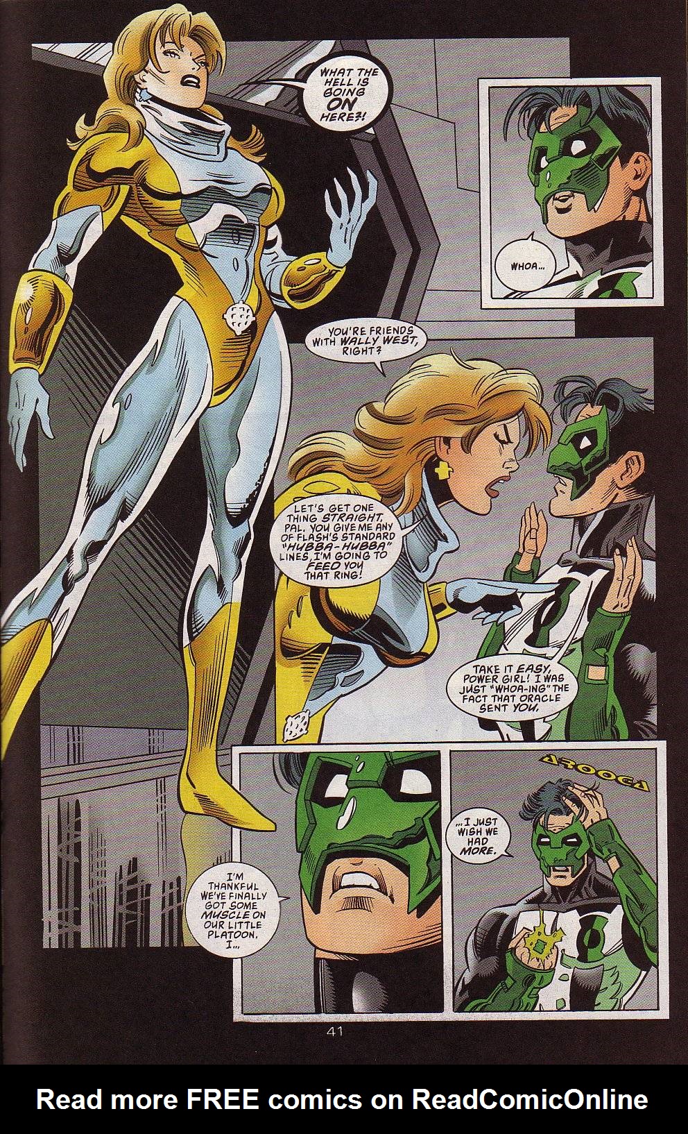 But The Flash’s pervertedness wasn’t the only thing that irritated her during this period. Any remarks about her body or any focus on it in general would do the trick. Same with perverted remarks toward women. This persisted even into the early 2000s, as seen when she first met Kyle Rayner.