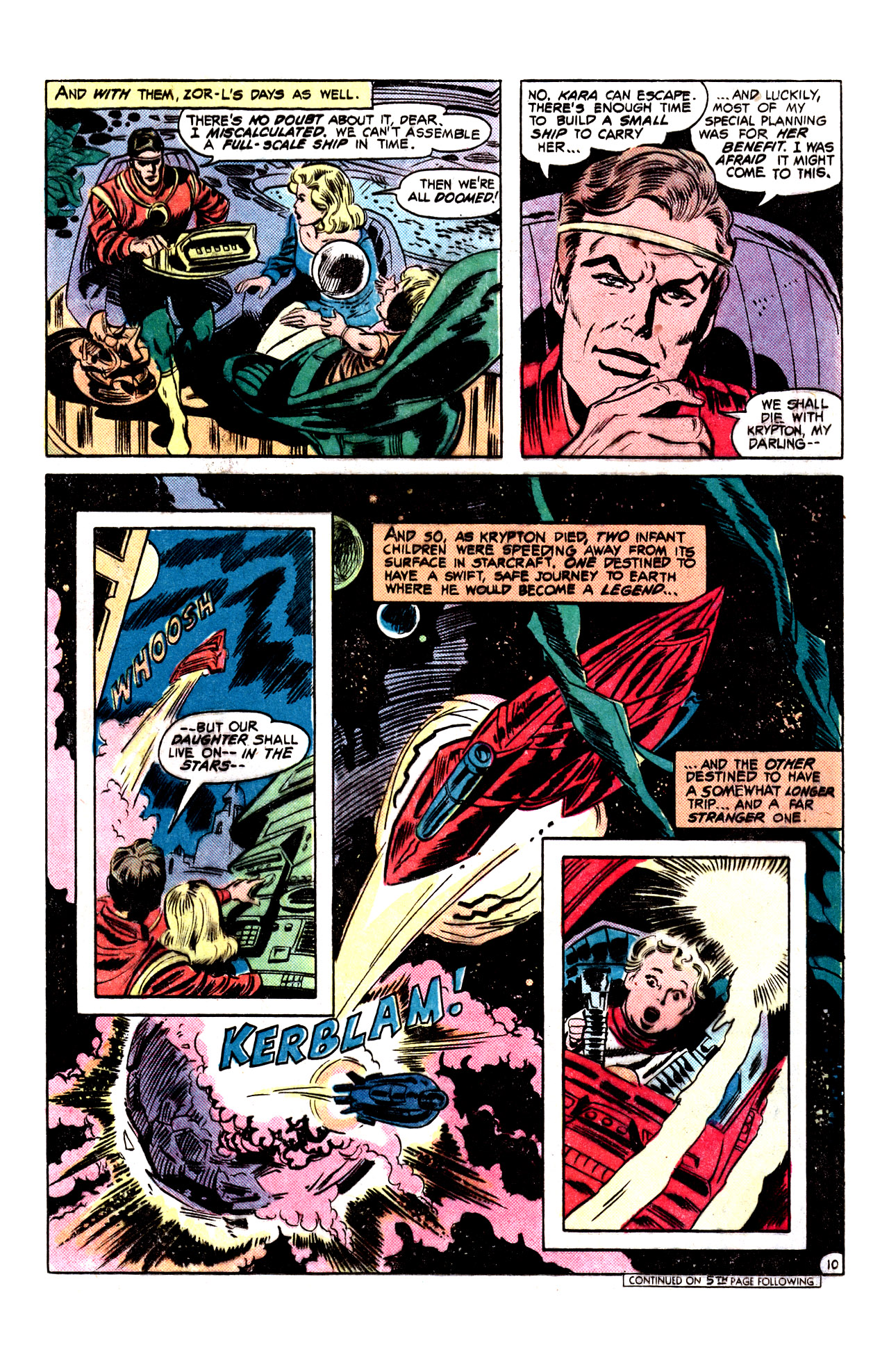 Desperate to save his family, Zor-L used his brother’s data to build a spaceship, modifying the plans to ensure a safer flight. Unfortunately, while he was in the middle of building it, Zor-L realized he had miscalculated the amount of time they had left. But if he couldn’t assemble a full-scale ship in time, he could at least ensure the survival of his infant daughter. As he and his wife made peace with their fates, Zor-L and Allura placed Kara inside her ship, sending her offworld as Krypton exploded.