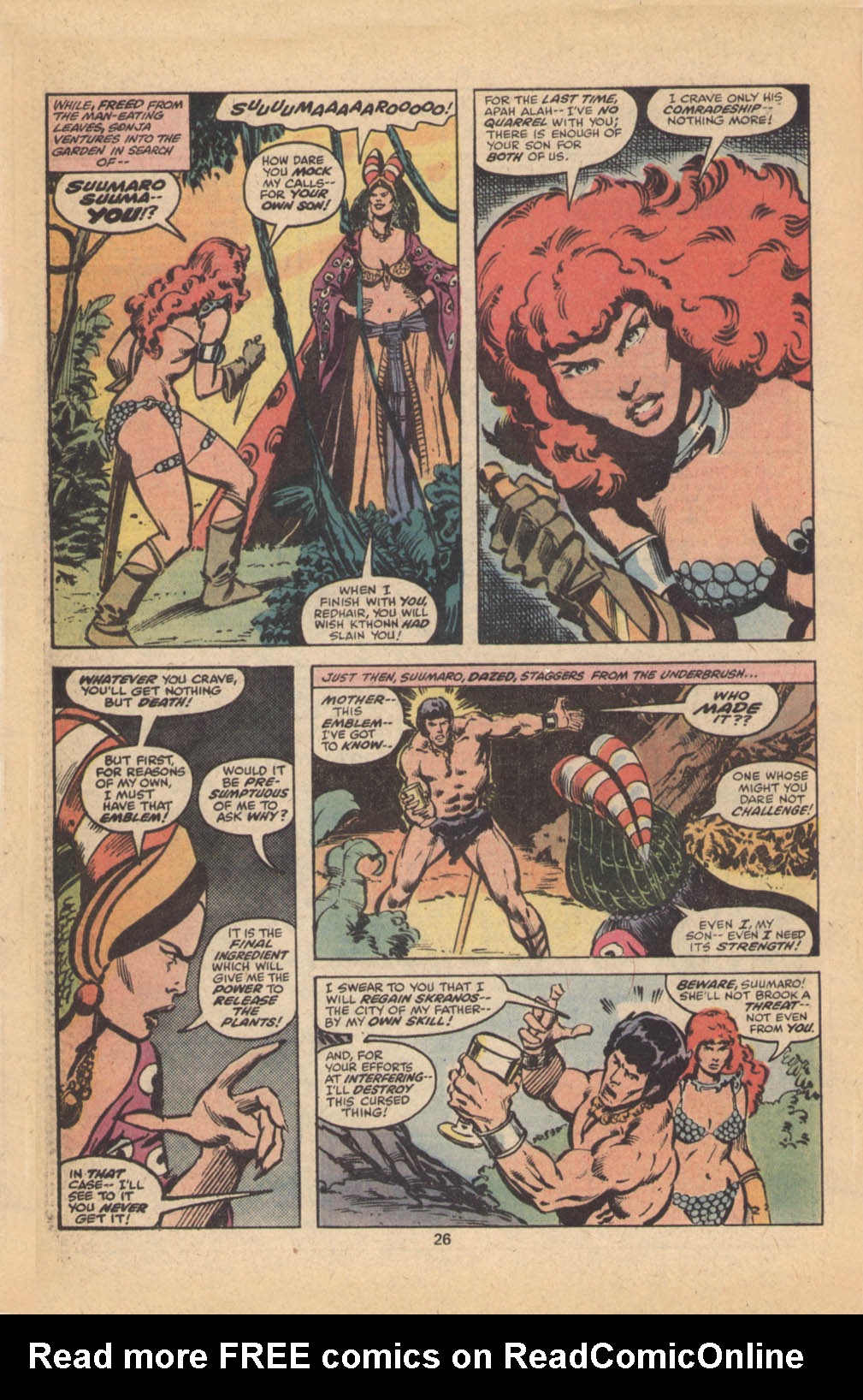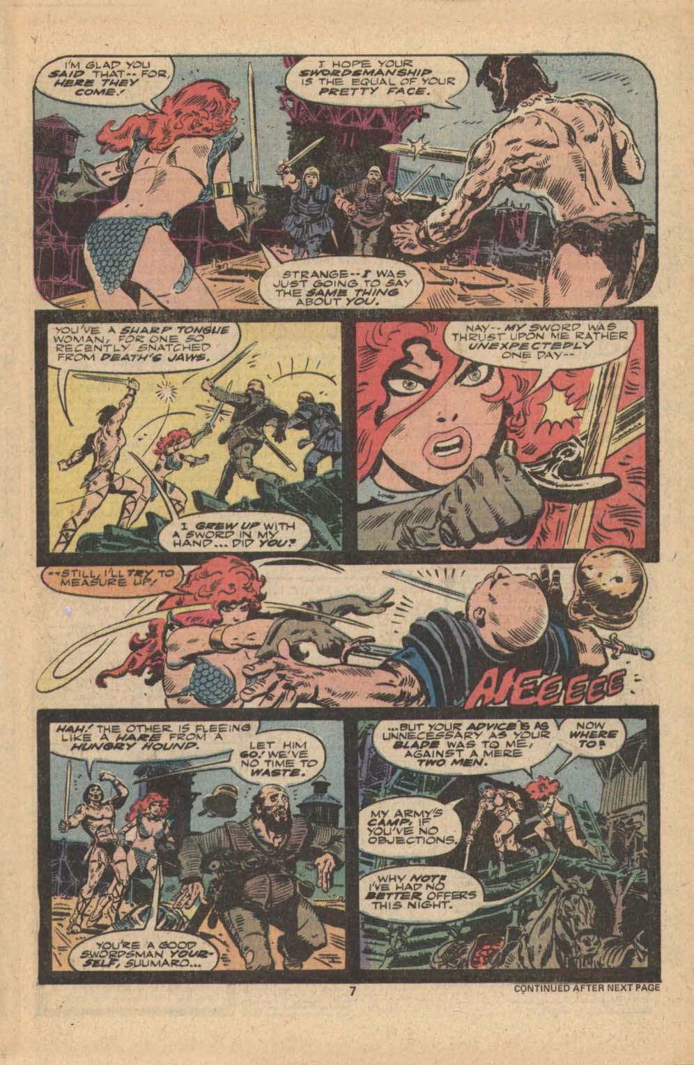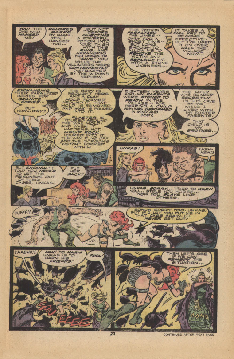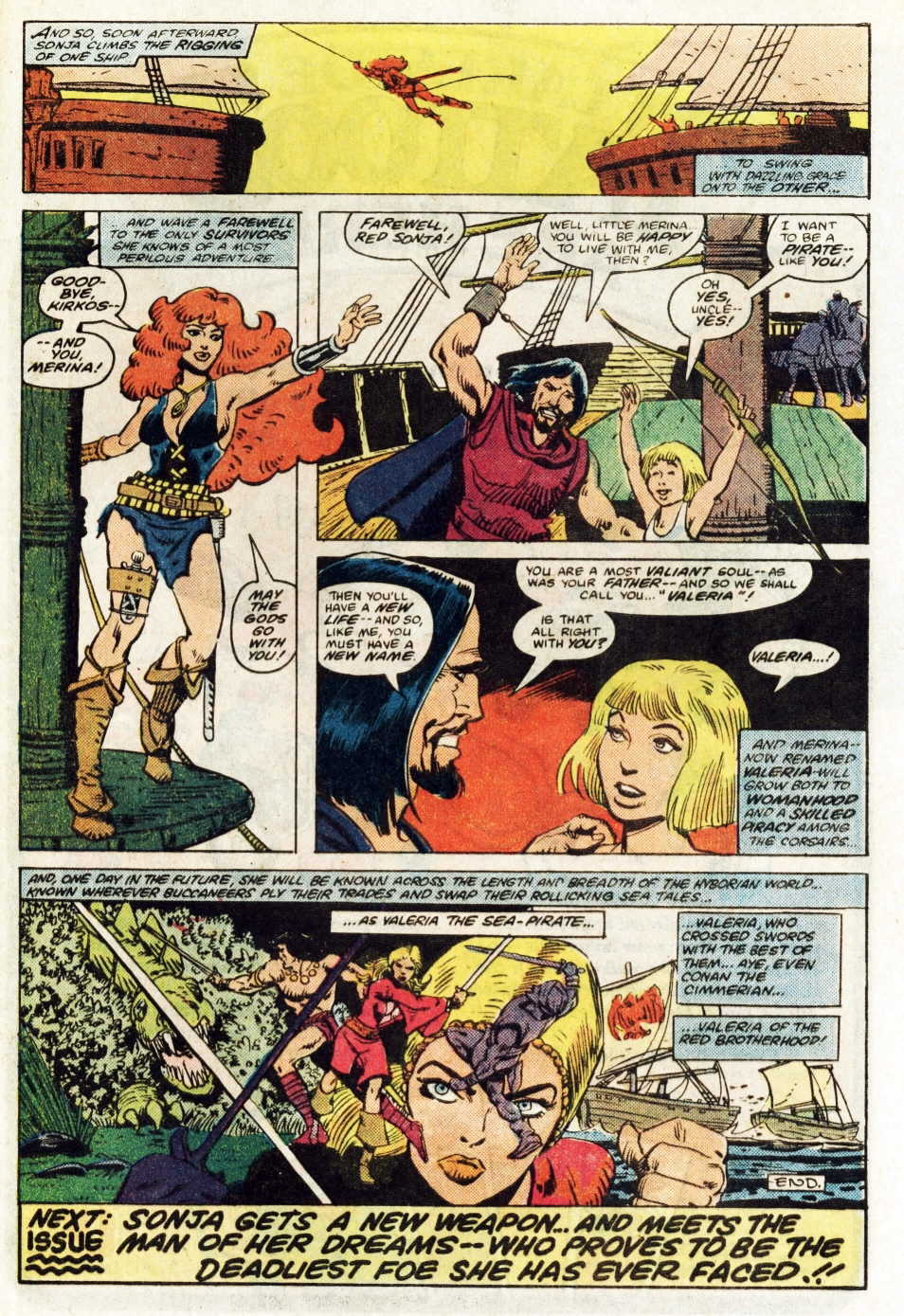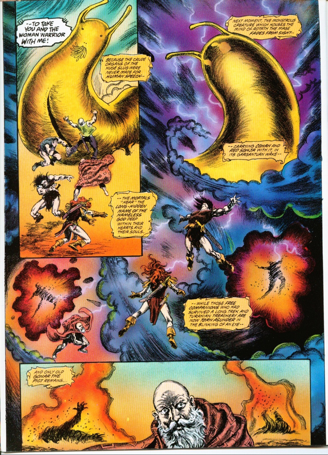 Following this, Sonja would continue to have many adventures, usually with Conan. These would include battles with enemies such as the Devourer of Souls, the shapeshifting Baron Strakkus, the first vampire Varnae, and the sorcerer turned giant slug Rothath. She even briefly took up a role as leader of a band of mercenaries that she personally inspired.