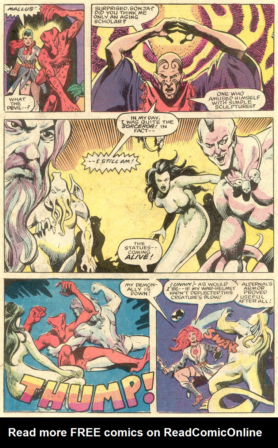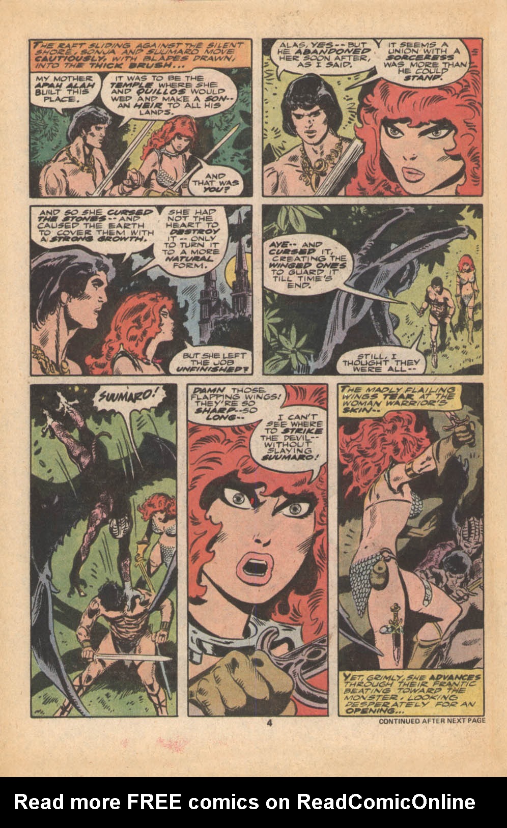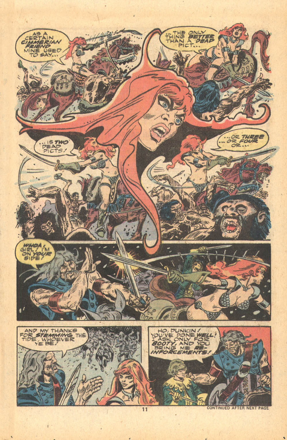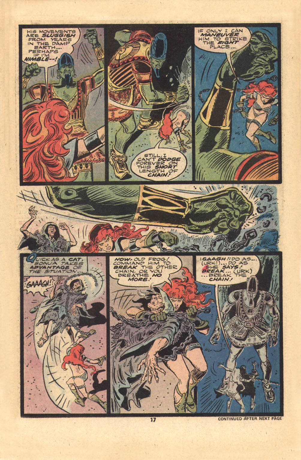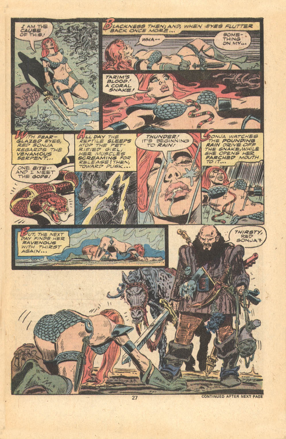 Following this, Sonja would continue to have many adventures, usually with Conan. These would include battles with enemies such as the Devourer of Souls, the shapeshifting Baron Strakkus, the first vampire Varnae, and the sorcerer turned giant slug Rothath. She even briefly took up a role as leader of a band of mercenaries that she personally inspired.