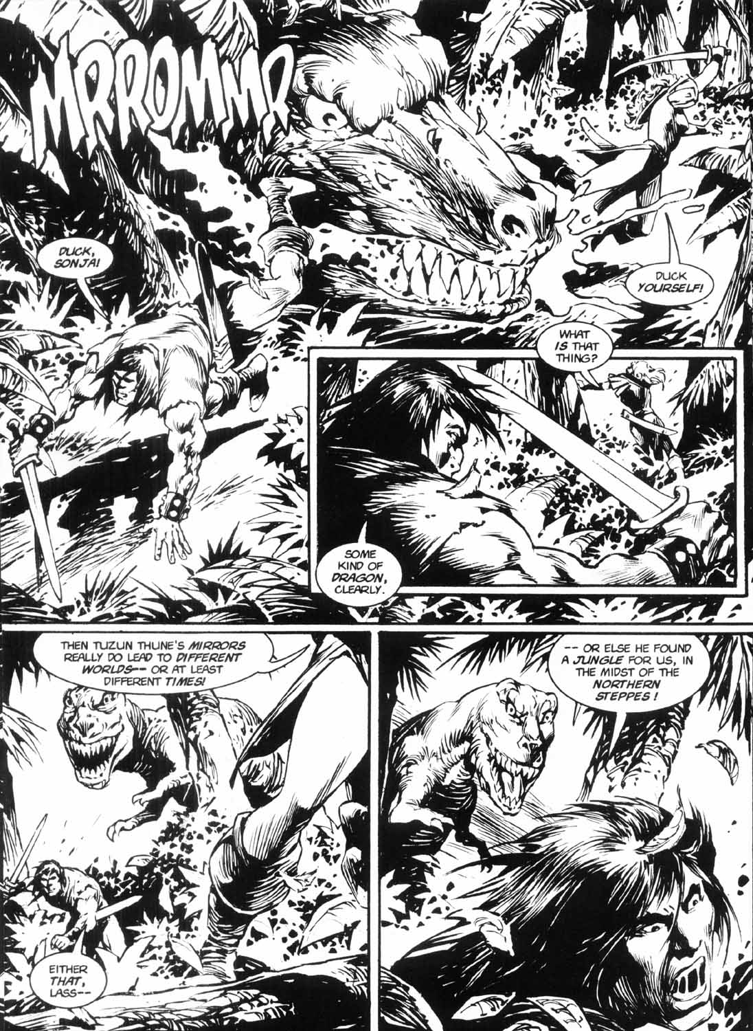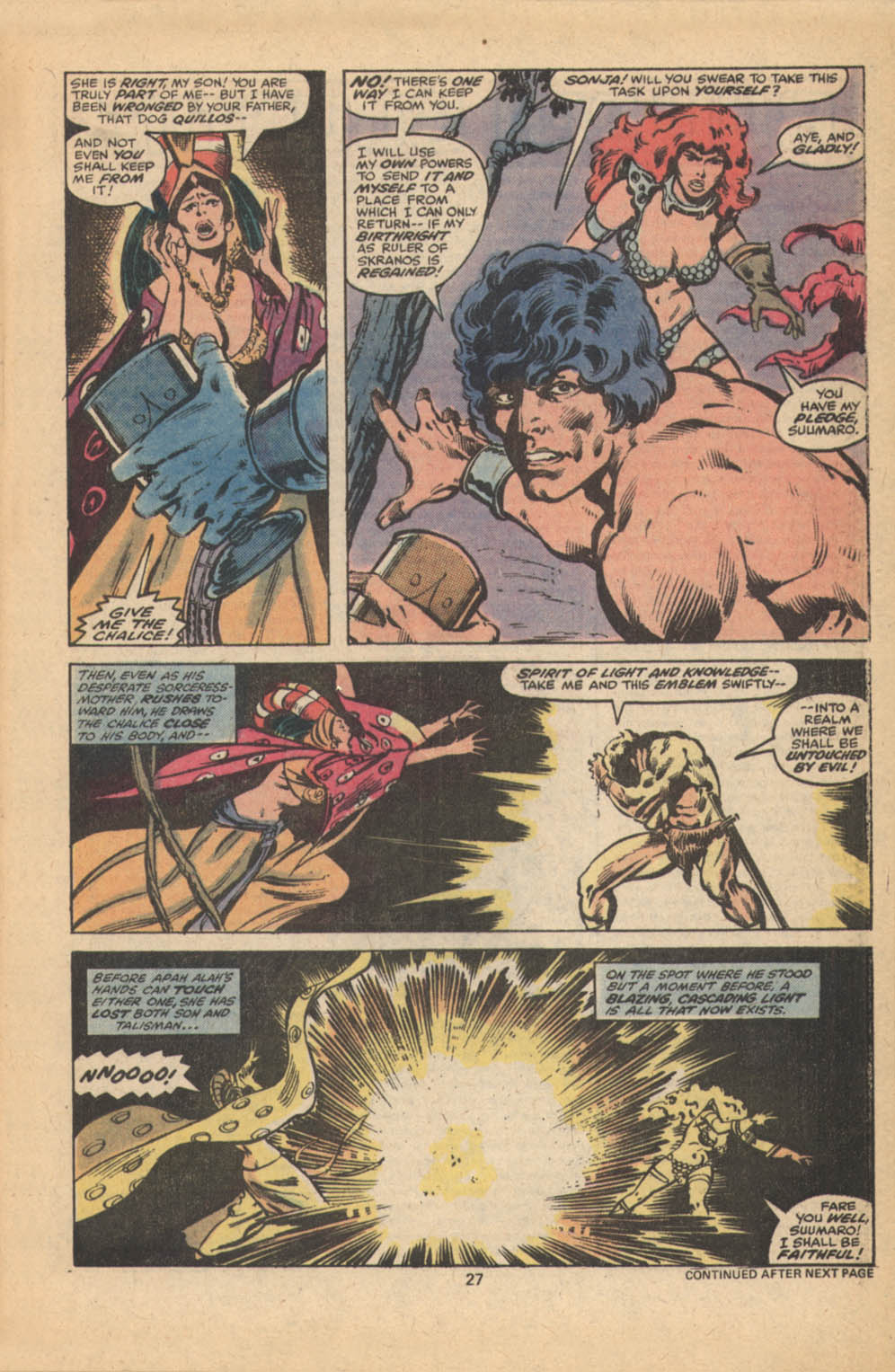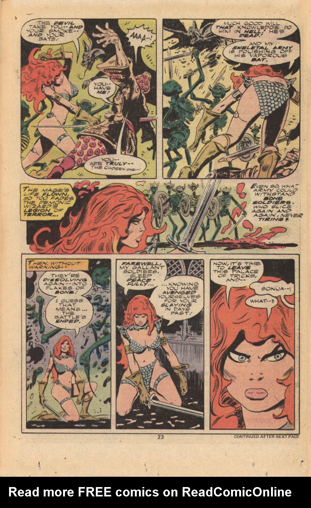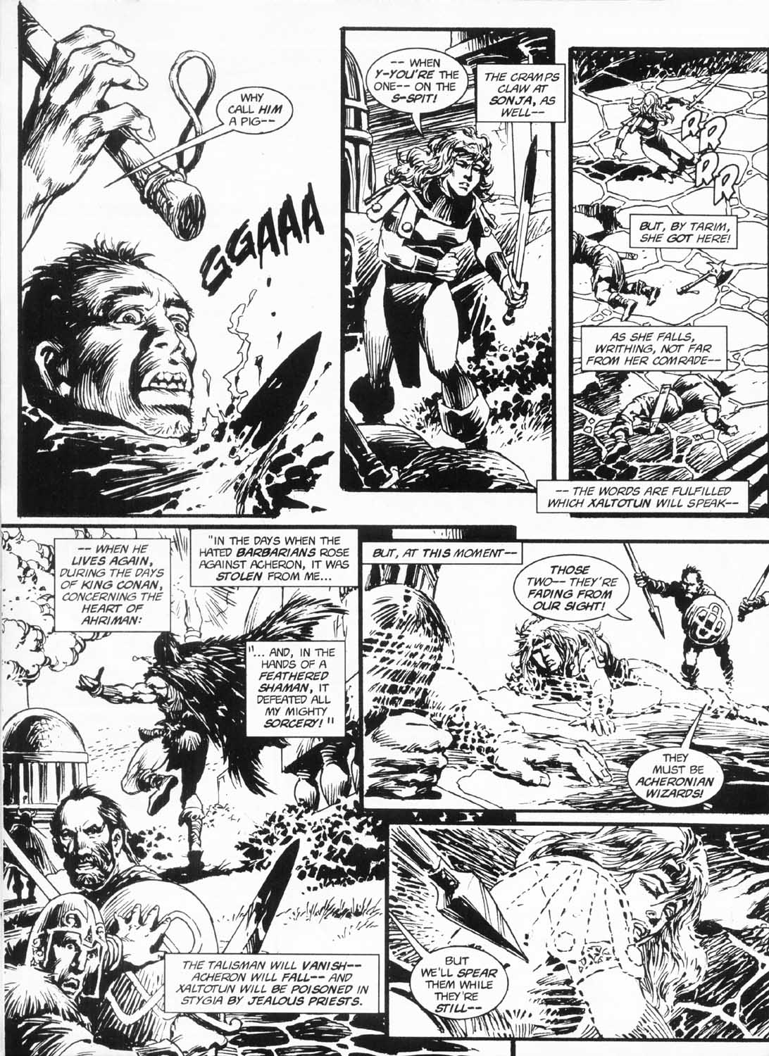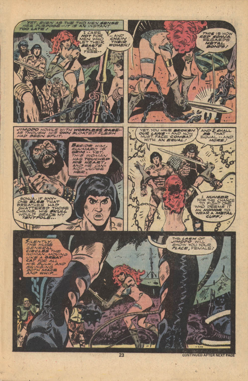Following this, Sonja would continue to have many adventures, usually with Conan. These would include battles with enemies such as the Devourer of Souls, the shapeshifting Baron Strakkus, the first vampire Varnae, and the sorcerer turned giant slug Rothath. She even briefly took up a role as leader of a band of mercenaries that she personally inspired.
