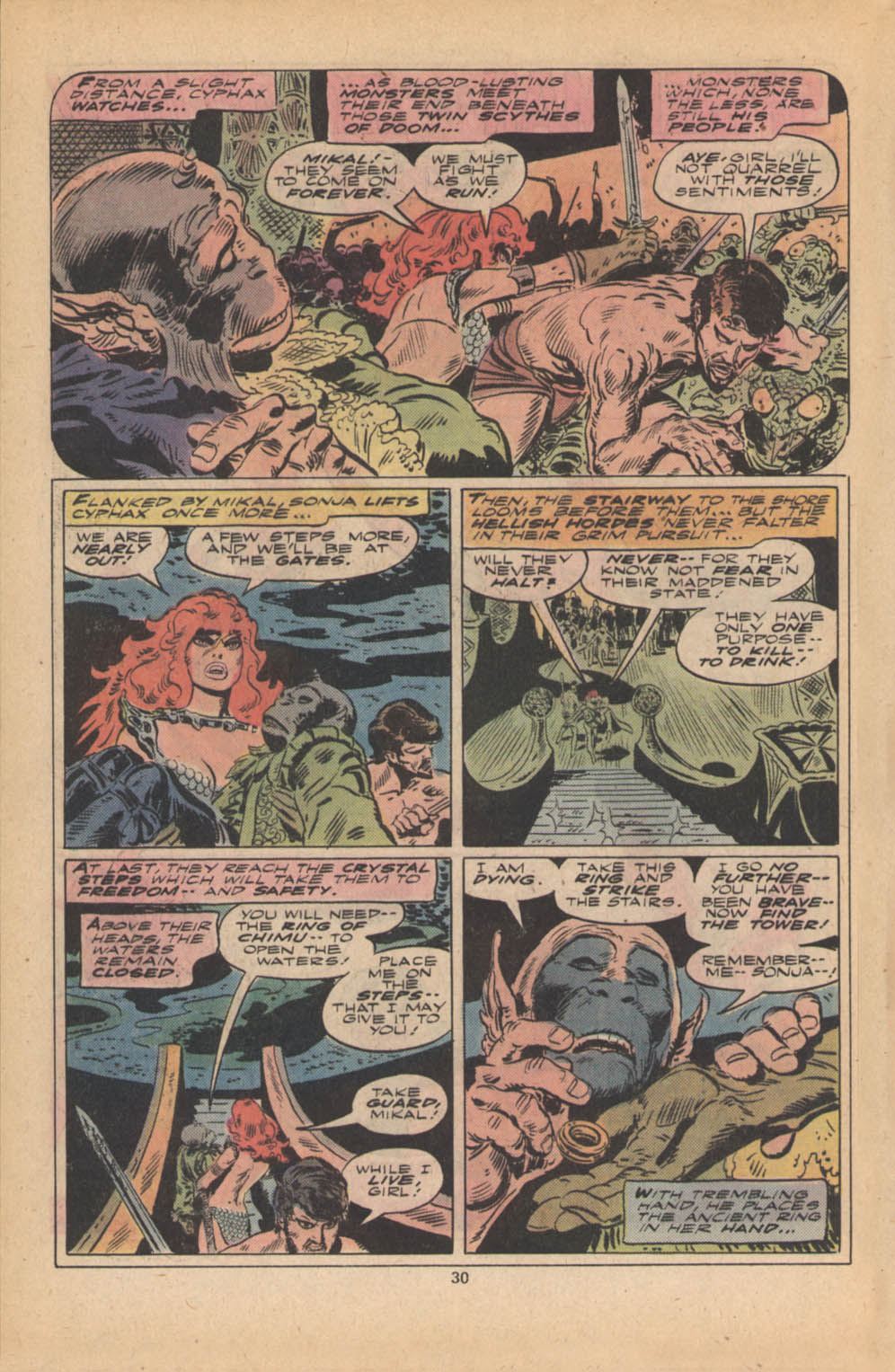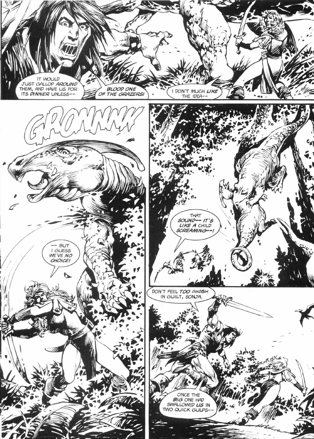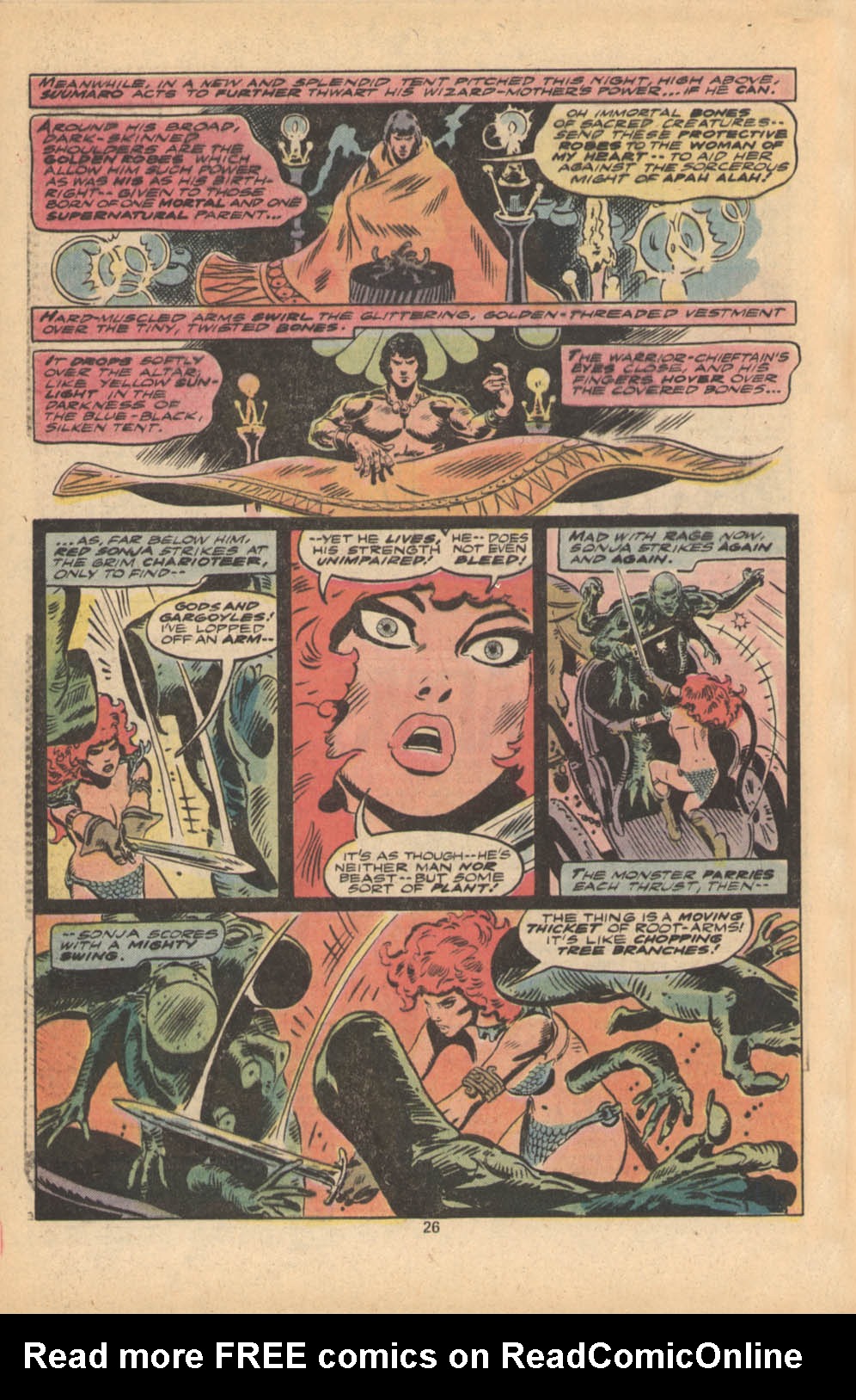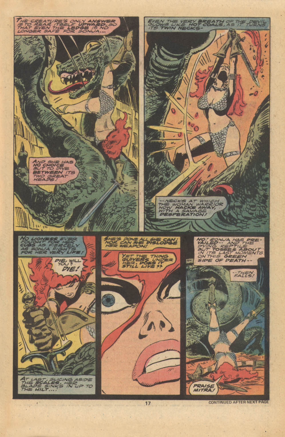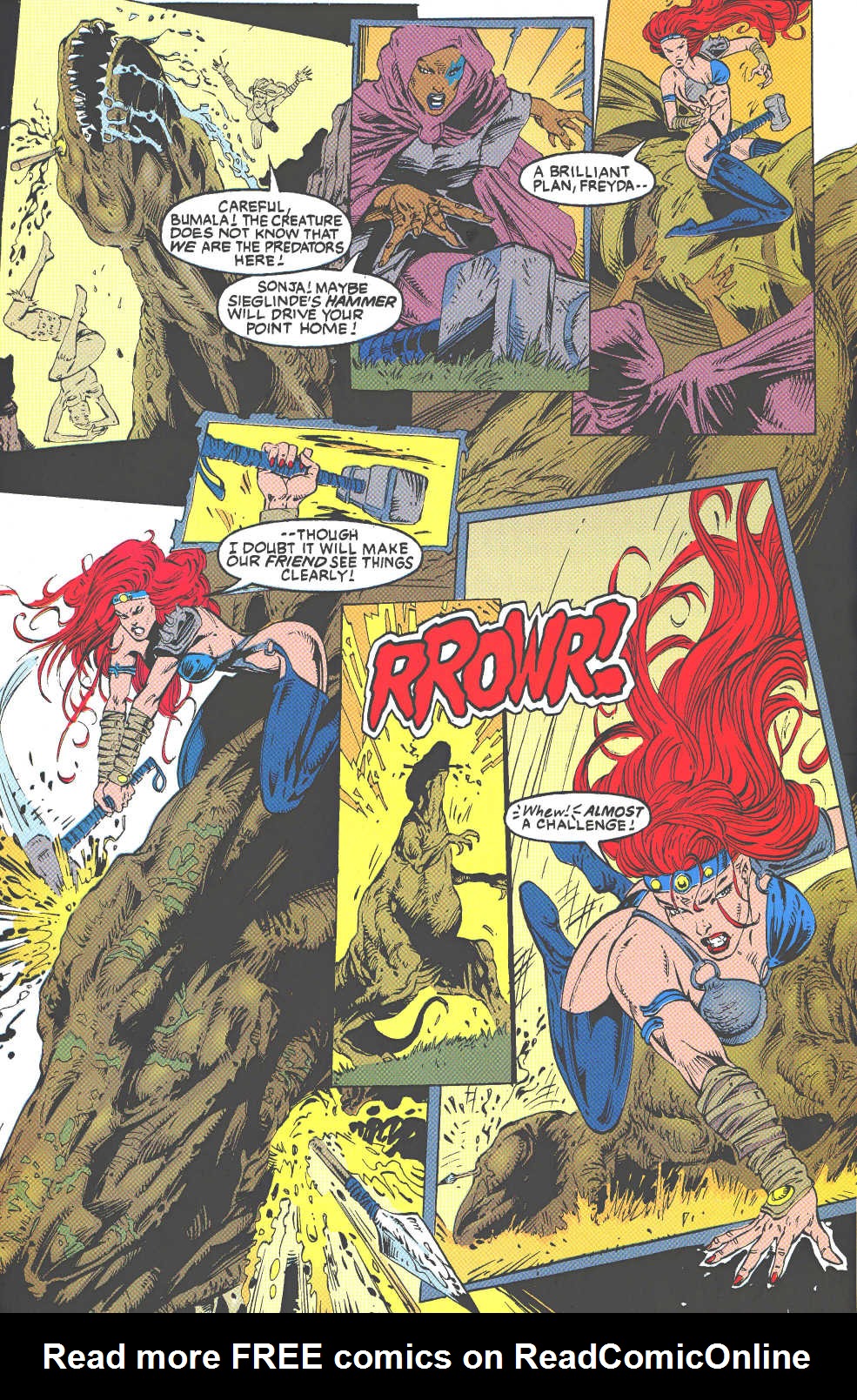 Following this, Sonja would continue to have many adventures, usually with Conan. These would include battles with enemies such as the Devourer of Souls, the shapeshifting Baron Strakkus, the first vampire Varnae, and the sorcerer turned giant slug Rothath. She even briefly took up a role as leader of a band of mercenaries that she personally inspired.