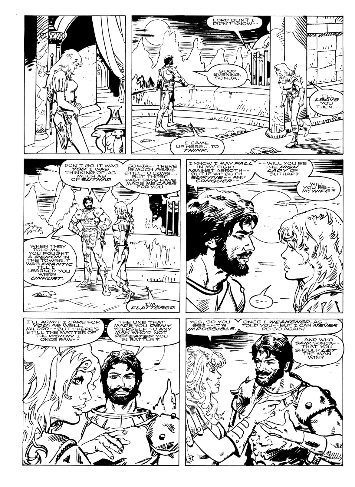 - In the same story that establishes this, Sonja finds a loophole for her vow and pride by purposefully losing to Prince Linneus in a game of chess. However, she comes to regret this and refuses to ever do it again.
