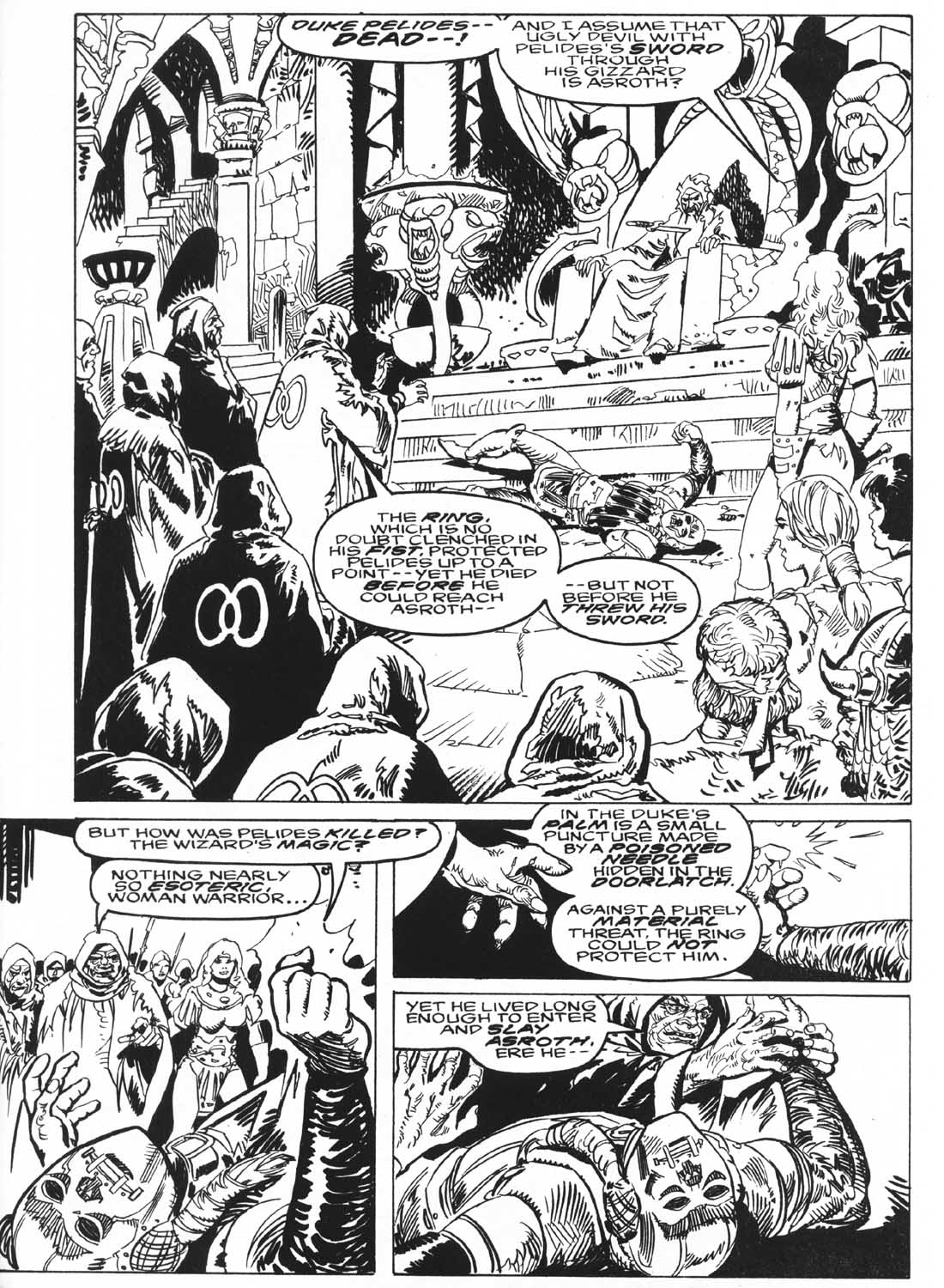 Yeah, Sieglinde tricked the rest of Sonja’s party into dying, but they were all one dimensional, arrogant bitches and Sonja knew them for a minute at best. And why would Sonja care about Analee killing her husband? Other stories made it clear she doesn’t care about other people’s romances, and Sonja should know Analee’s fully justified in killing him. Not only did she overhear Analee say she didn’t want to be resurrected, she was explicitly told beforehand that her soul was condemned to a suit of armor until she fell in love with her husband.