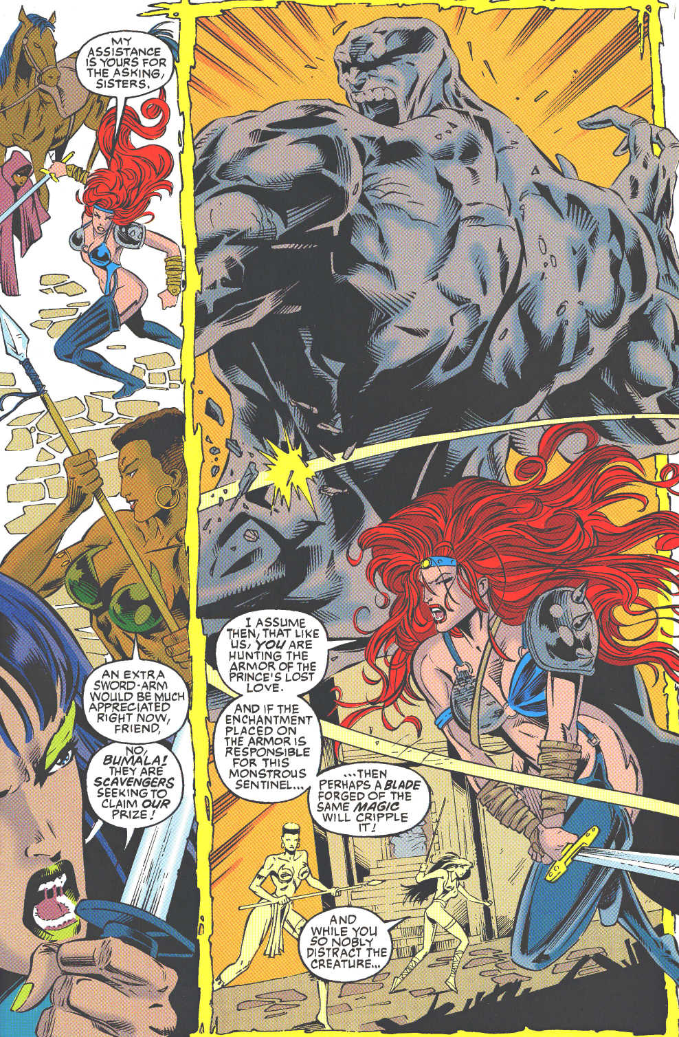 Though she mourned Zora’s death, this didn’t stop Sonja from continuing her adventures. She even gained companions in the form of the wizard Achmal and the Alwazarian warrior Galon, though they were eventually slain in battle. Shortly after, she’d find herself engaged in battle with Vassilisa Iceheart, sorceress queen and sworn enemy of Scathach. With aid from the ghost of Achmal (in reality a servant of Scathach) some new companions, and the blessing of Scathach, Sonja slew the dark sorceress, earning favor in Scathach’s eyes.