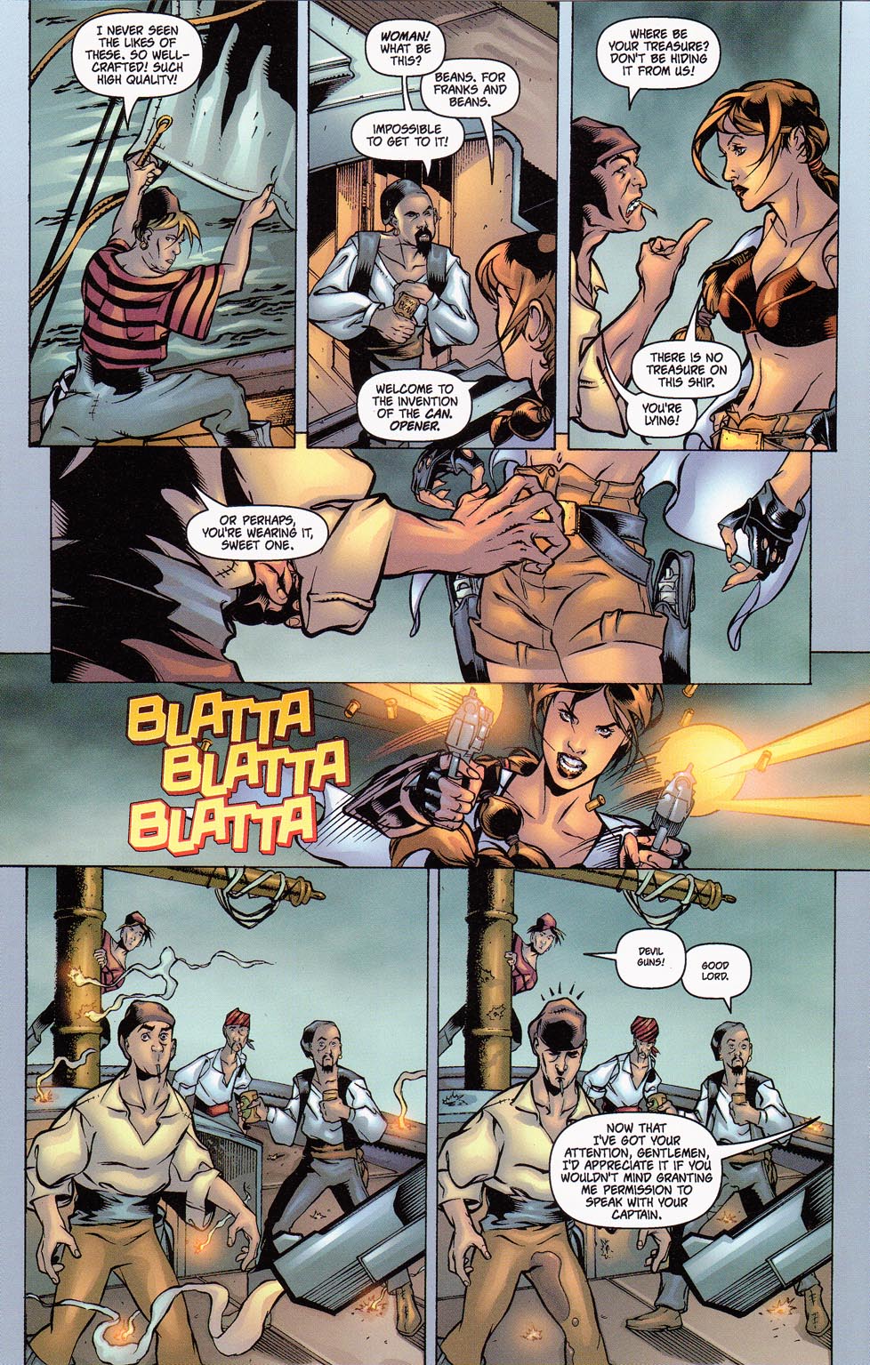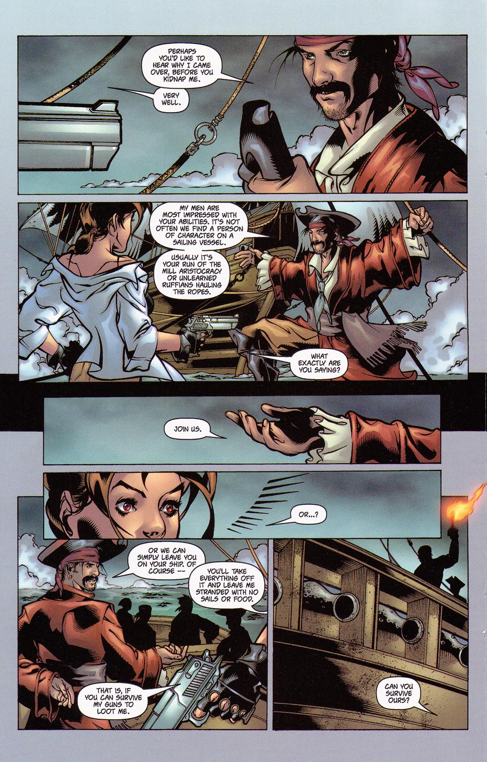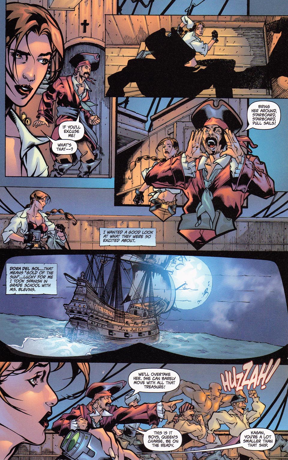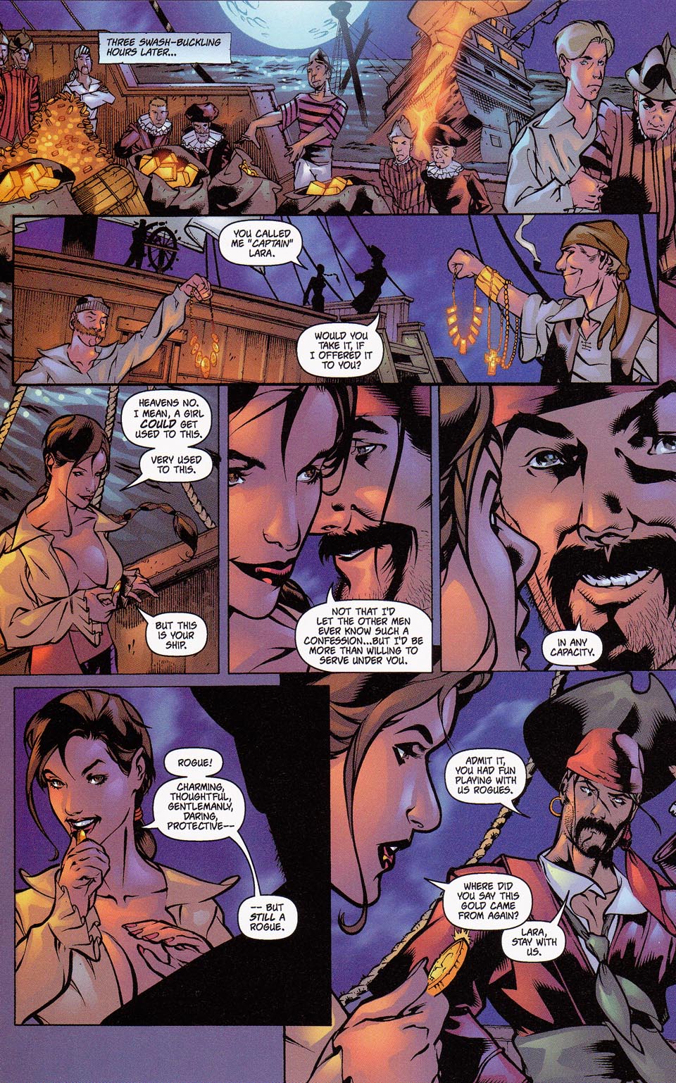 Several years later, during a cruise across the seas, Lara encountered a pirate ship filled with 16th century pirates. Intrigued by her advanced technology, Captain Jonathan Kagan offered her an ultimatum: she could join his crew, or he could turn his ship’s cannons on her. Left with no other choice, Lara agreed, and during her time with the ship, she soon realized it was cursed, seemingly doomed to repeat the same failed raid over and over again. Upon recognizing this, Lara took charge and ensured the raid was successful, causing the heretofore unknown ghost ship to finally pass on from its doomed voyage from El Dorado.