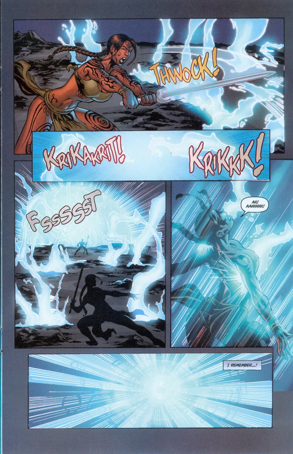 Takes a blast from the dream spear that shatters her sword.