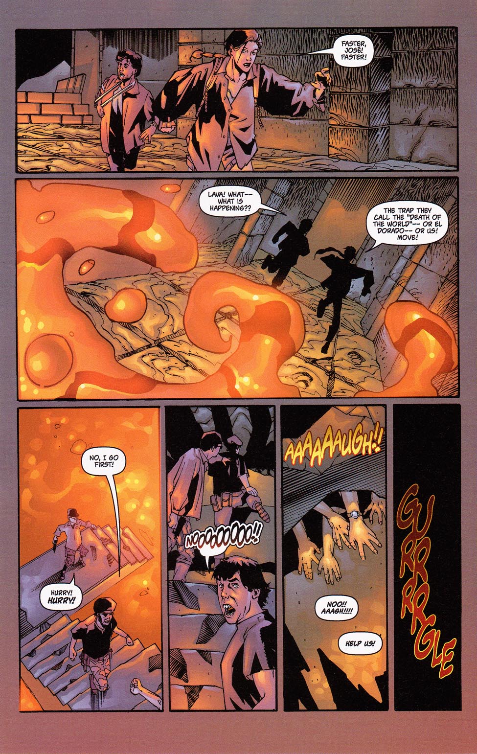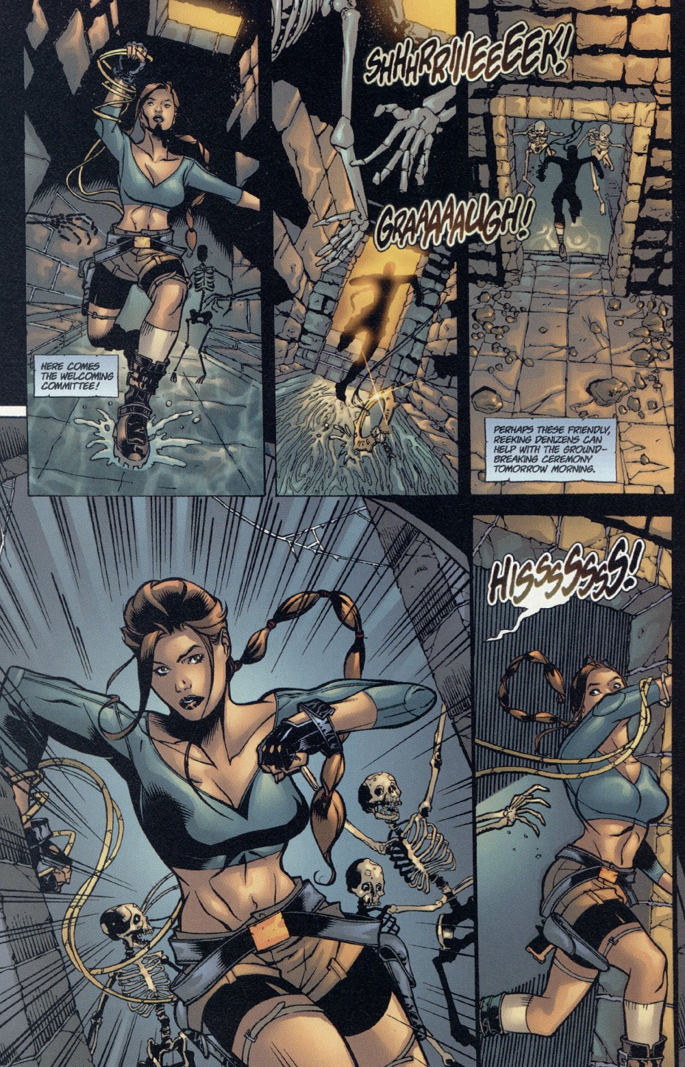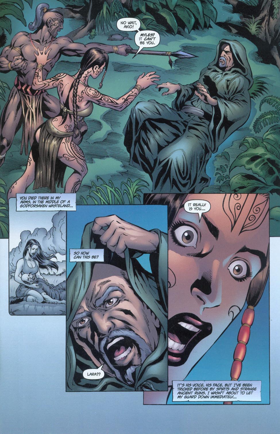 However, that doesn’t stop me from having a few minor complaints. Issue 8 was a confusing mess full of trippy deja vu sequences where Lara or one of the Maori’s inhabitants says or does something, talks about how they’ve done this before, haven’t done this before, how they’re doing it now, and then they move on. Then at the end it’s revealed everything in the issue was pointless because Lara screwed up near the start, and it’s all a dream. Granted, its events are said to occur during the penultimate comic, so it’s not completely irrelevant, but even in that context, it’s still a total clusterfuck. And it’s especially annoying to learn the comic with her best strength feat was unusable.