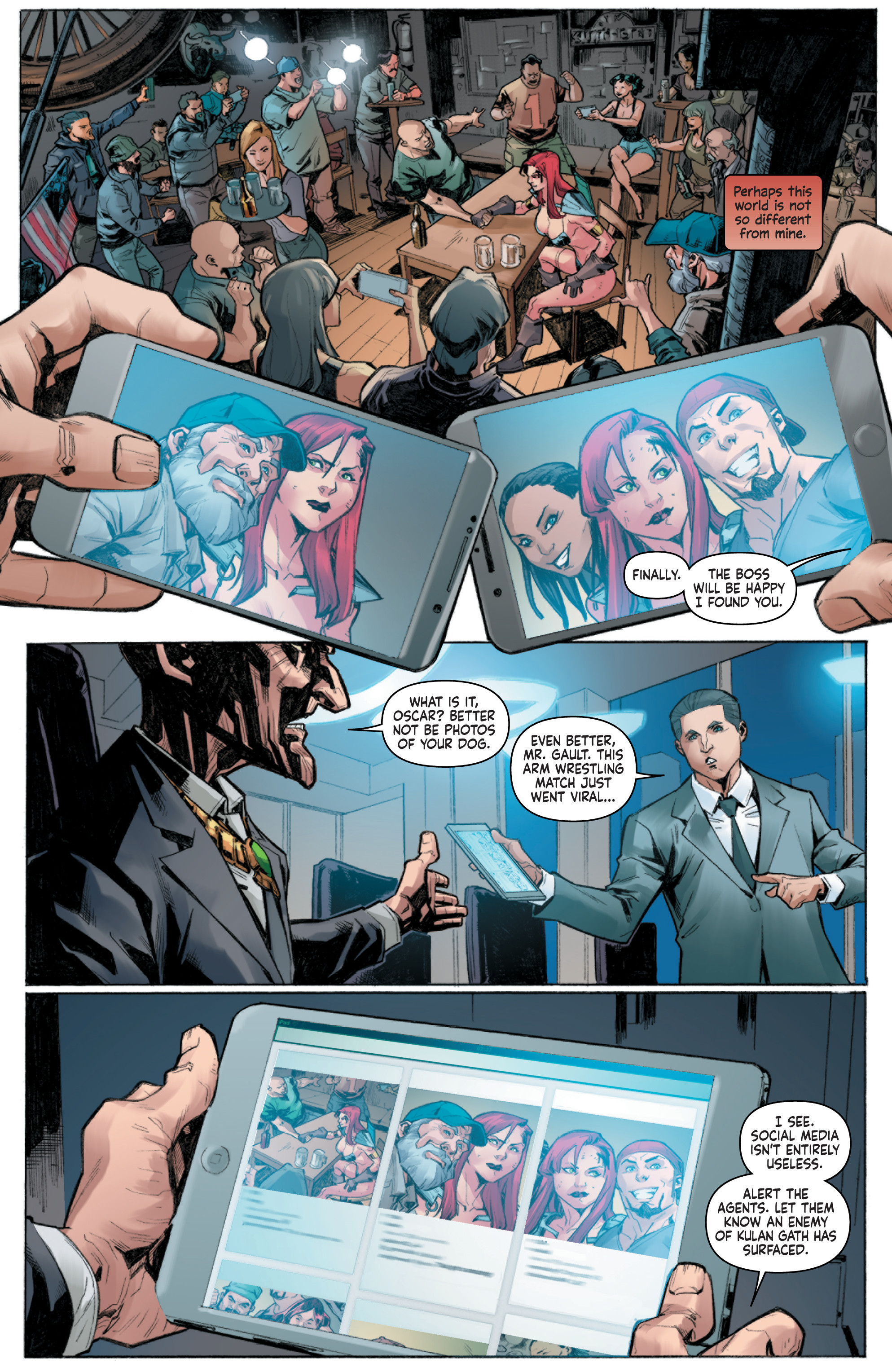Issue 22 was also disappointing and honestly felt like filler. The change in artists threw me off at first, but Jonathan Lau still did an amazing job… aside from the hair for Sonja’s redesign. Why would you approve this? It looks awful.