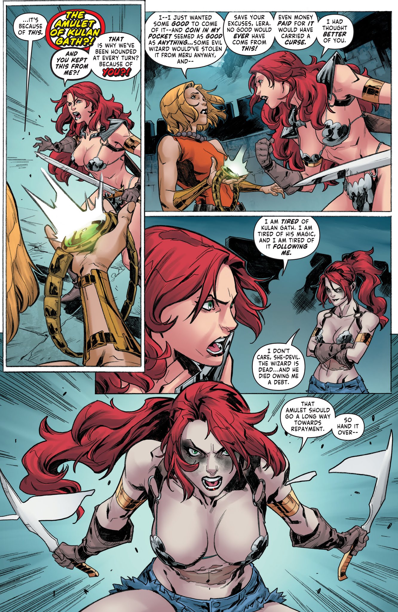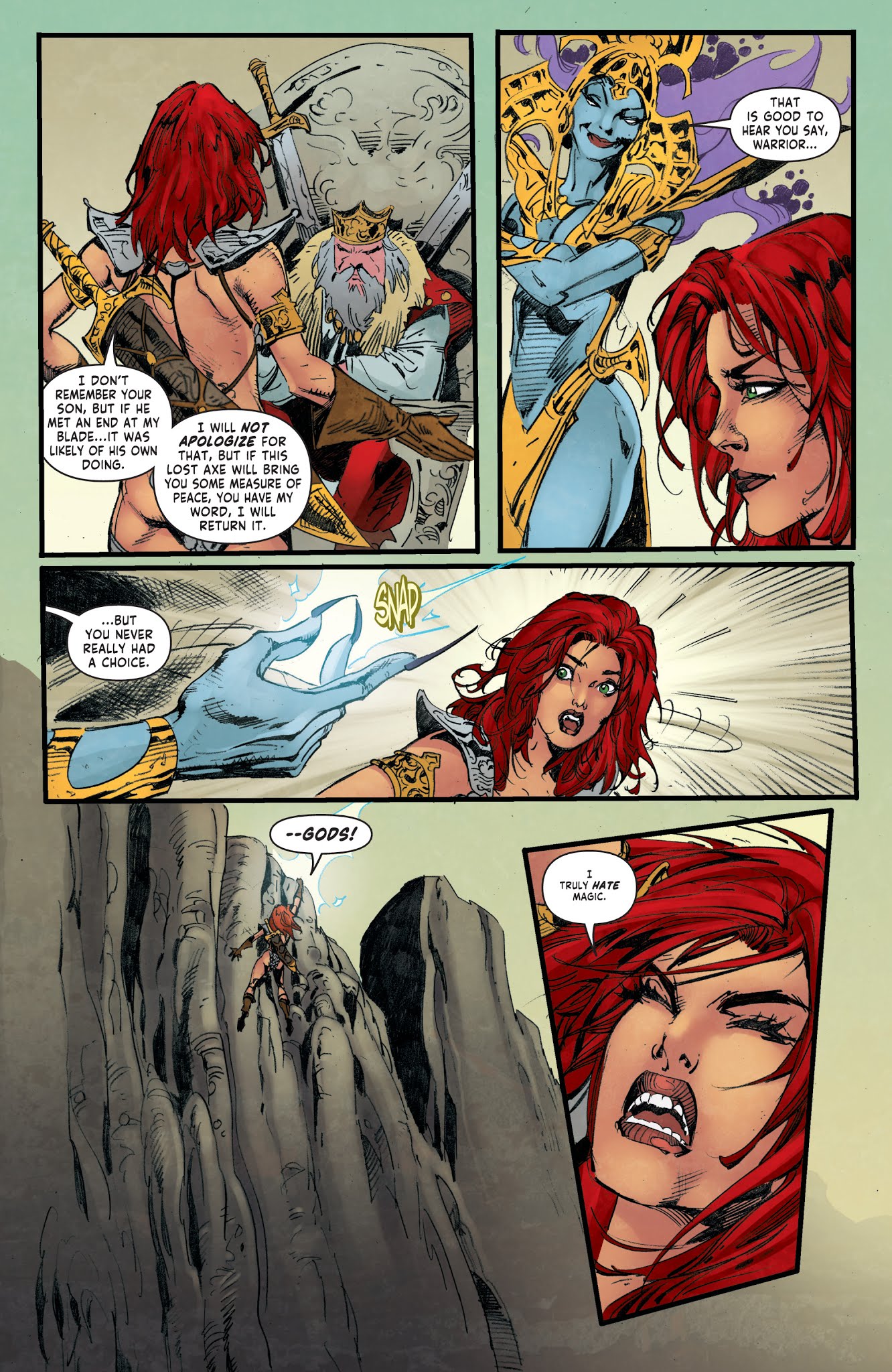 Like all other versions of Sonja, she hates magic.