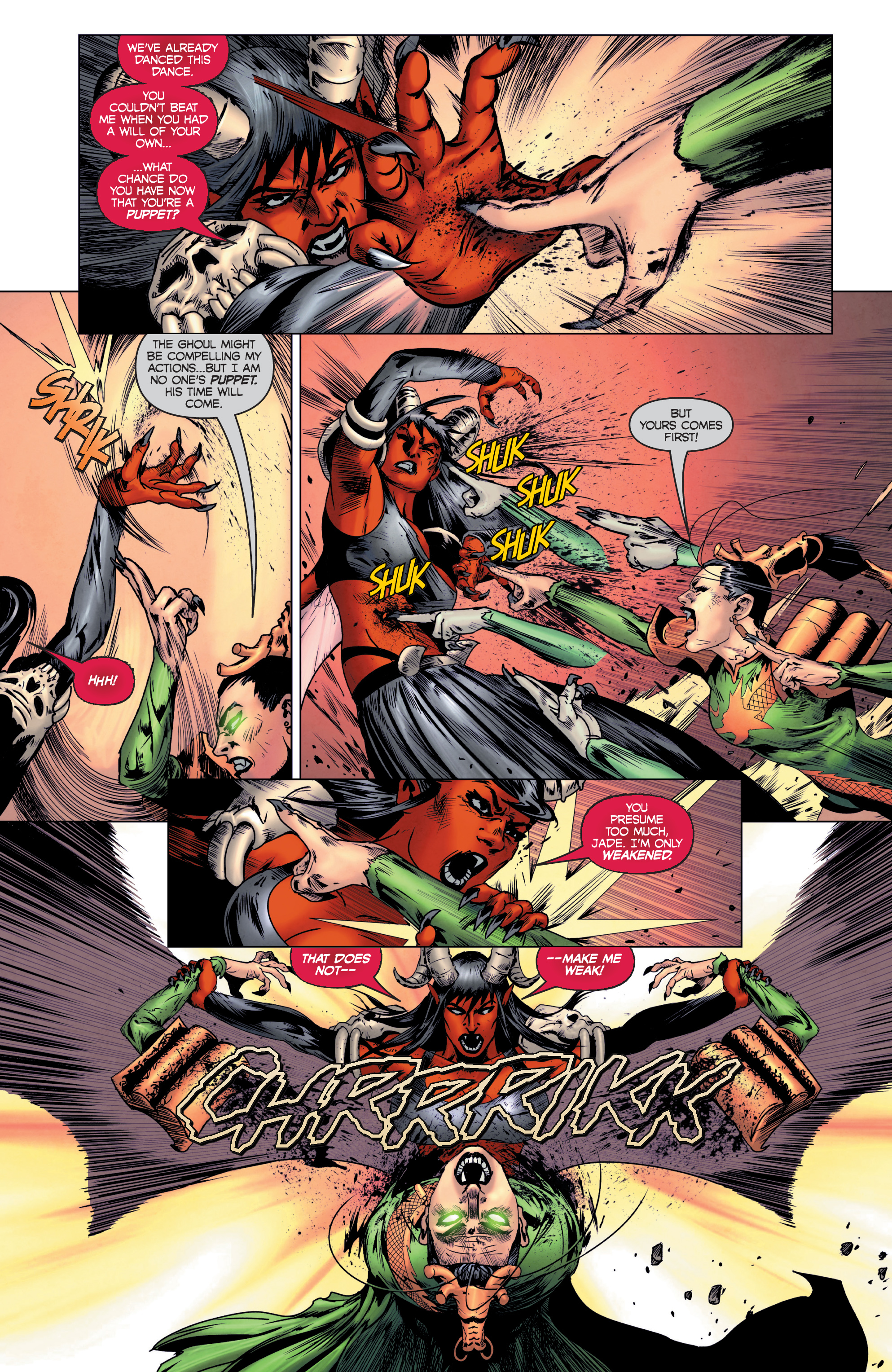 During her solo journeys, Sonja would again cross paths with Gath and kill him, casting his amulet into the ocean so it could never be found. Though this seemed like a good idea at the time, it wound up ensuring doom for the entire world as Mistress Hel, goddess of the underworld, used the amulet’s power as incentive for many other beings to spread chaos and destruction, eventually culminating in the amulet being destroyed and the timeline going with it. Hoping to prevent this, Sonja and the modern day dhampir Chastity teamed up to retrieve the amulet and begrudgingly revive Kulan. And thanks to the carelessness of Evil Ernie, Gath was revived using the demon Purgatori as his host.