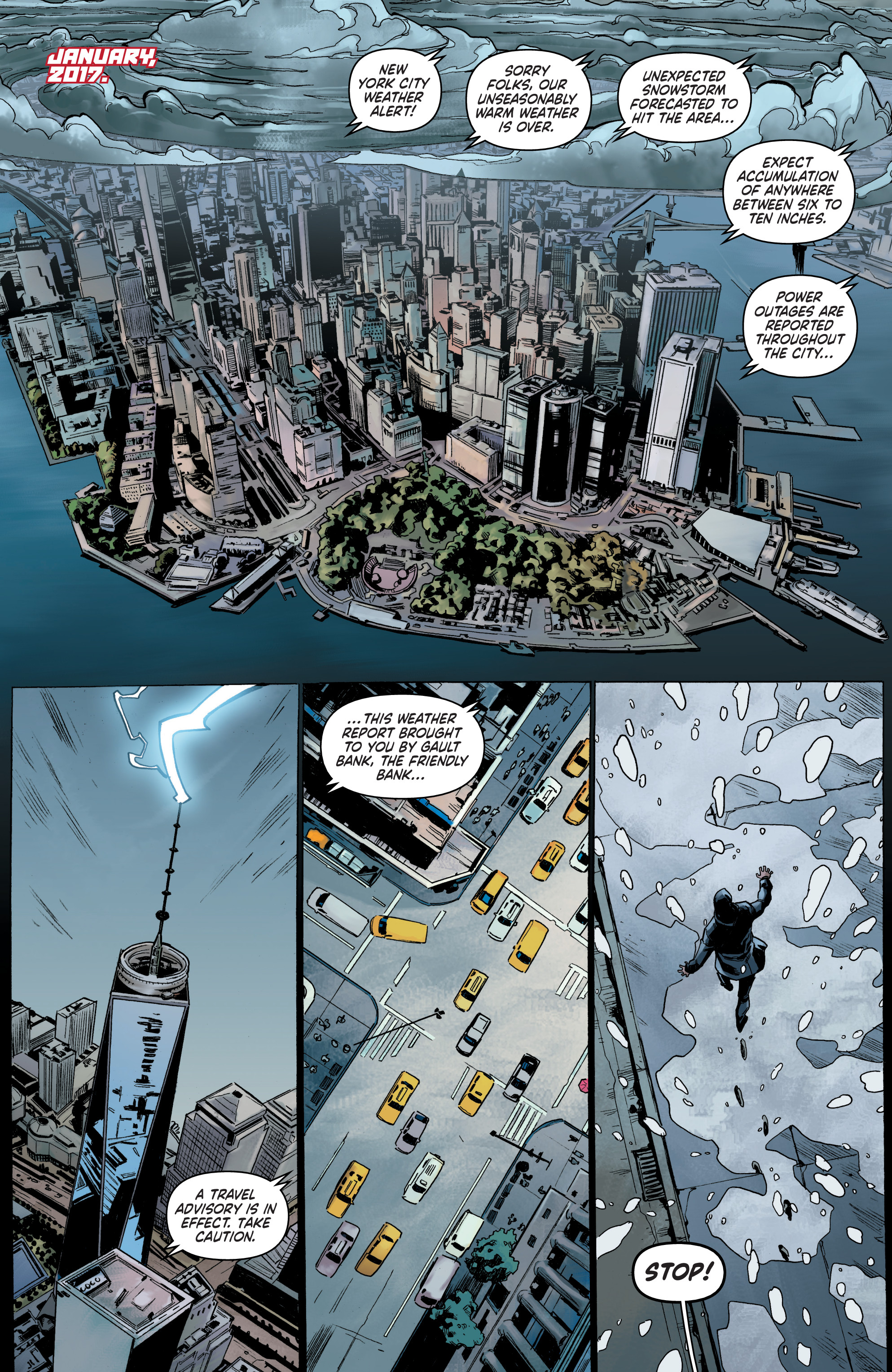 During what was otherwise a regular night, Sonja was approached by the messenger Ram of Shonkador with a mission: protect the people of Meru by slaying the Beast of Khauran. When she and the demon faced off, she also encountered its master, the sorcerer Kulan Gath, who used his powerful magic to send her to another time. Waking up in what seemed to be a cave, Sonja ventured out and discovered strange things she’d never seen in her journeys: metal beasts and bizarre weapons that fired lead slugs. Though she wasn’t aware of it at the time, Sonja had been transported thousands of years into January 2017.
