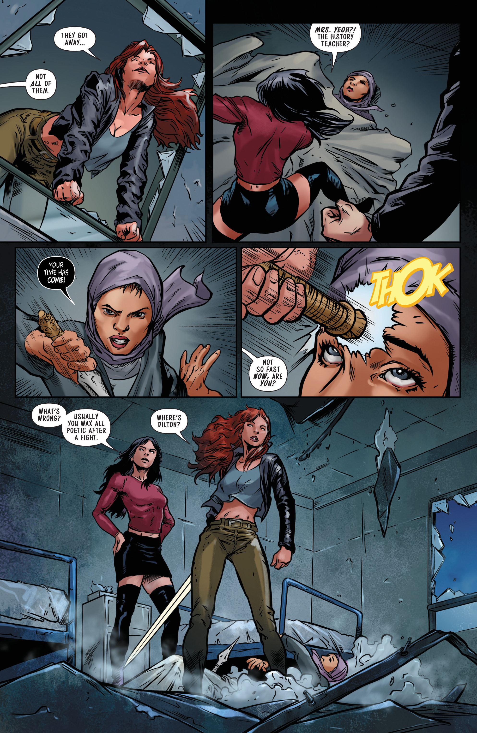 Uses her cloak to blind Purgatori and attempt a sneak attack.