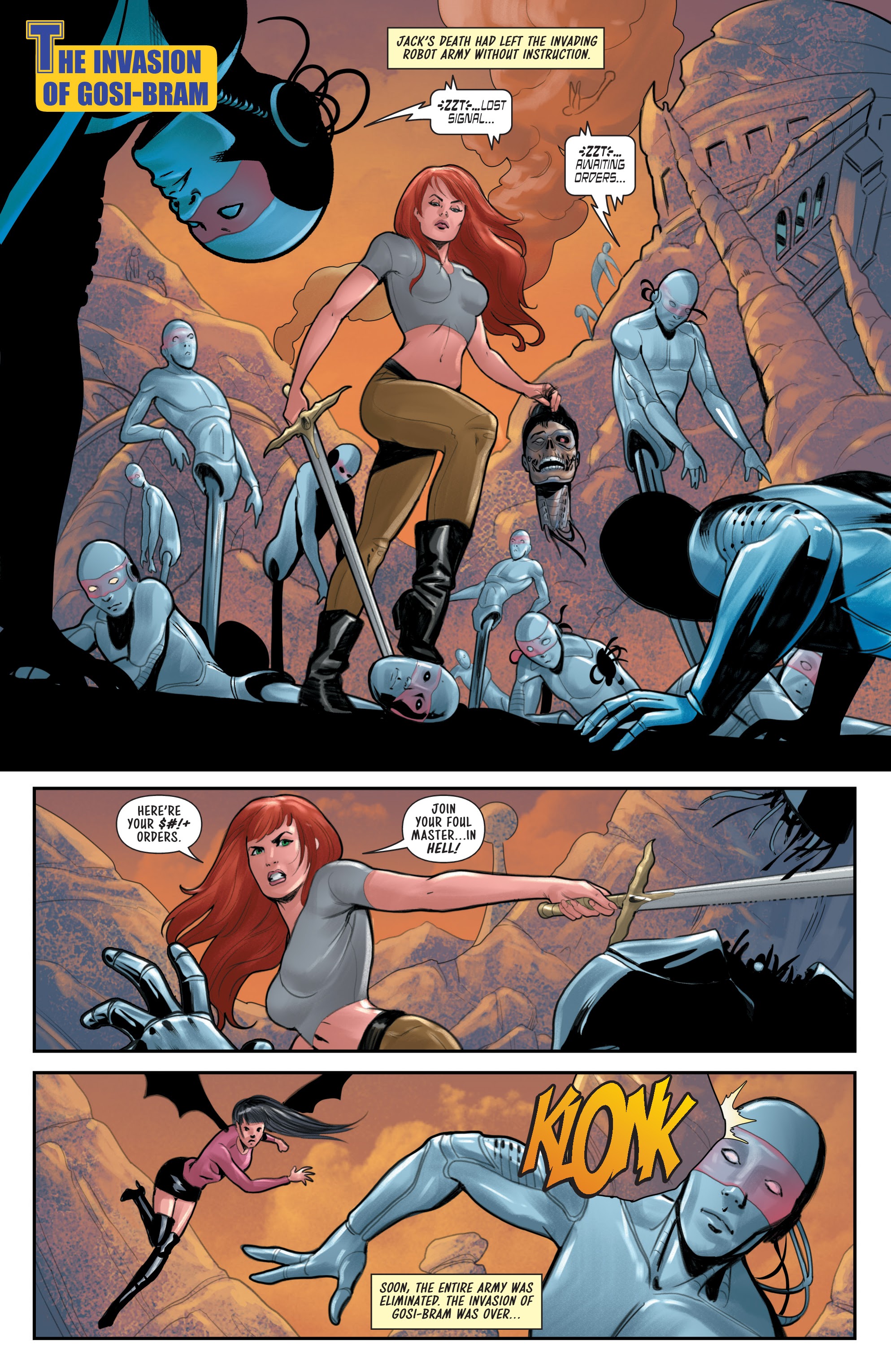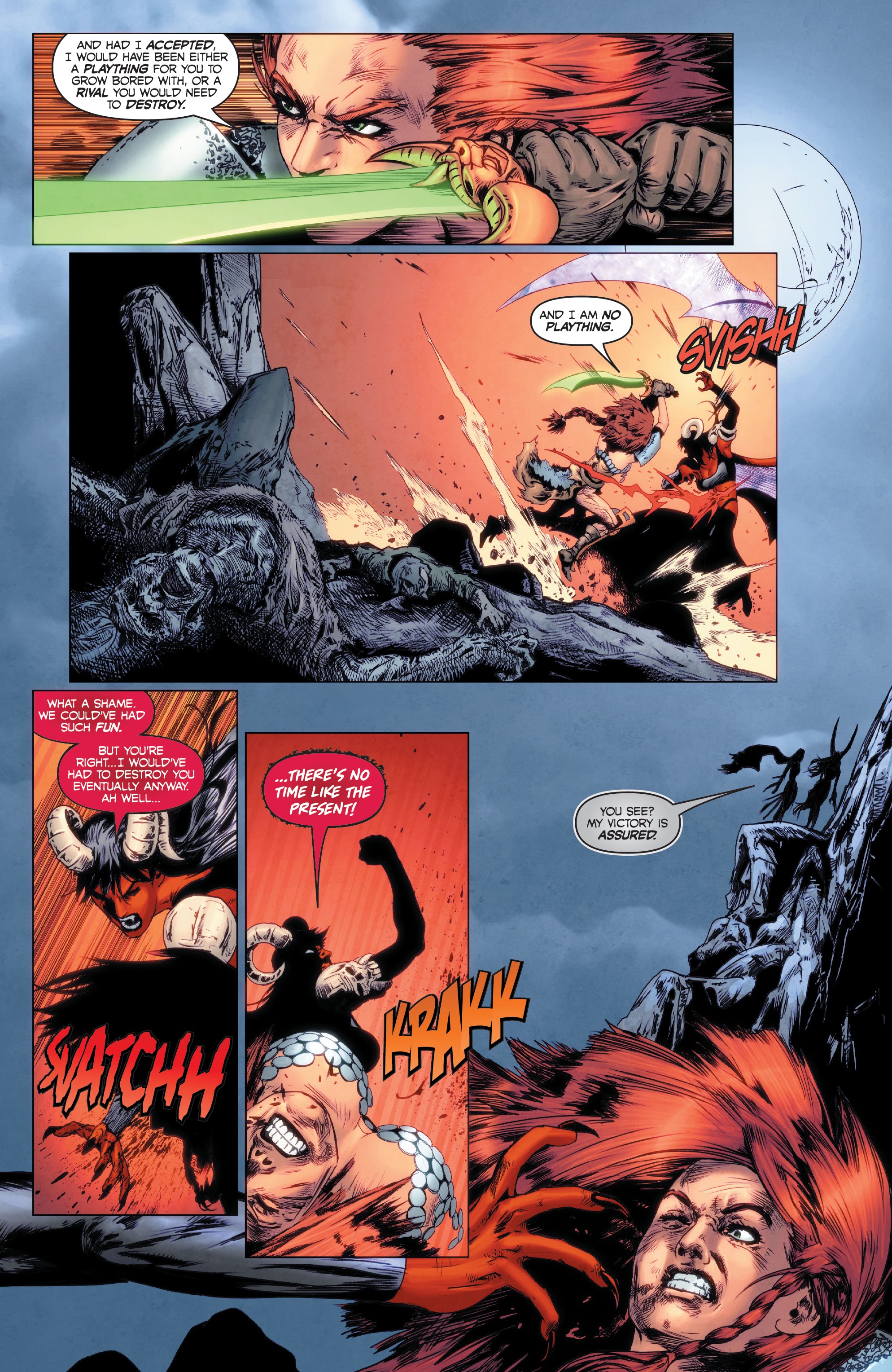 Issue 22 was also disappointing and honestly felt like filler. The change in artists threw me off at first, but Jonathan Lau still did an amazing job… aside from the hair for Sonja’s redesign. Why would you approve this? It looks awful.