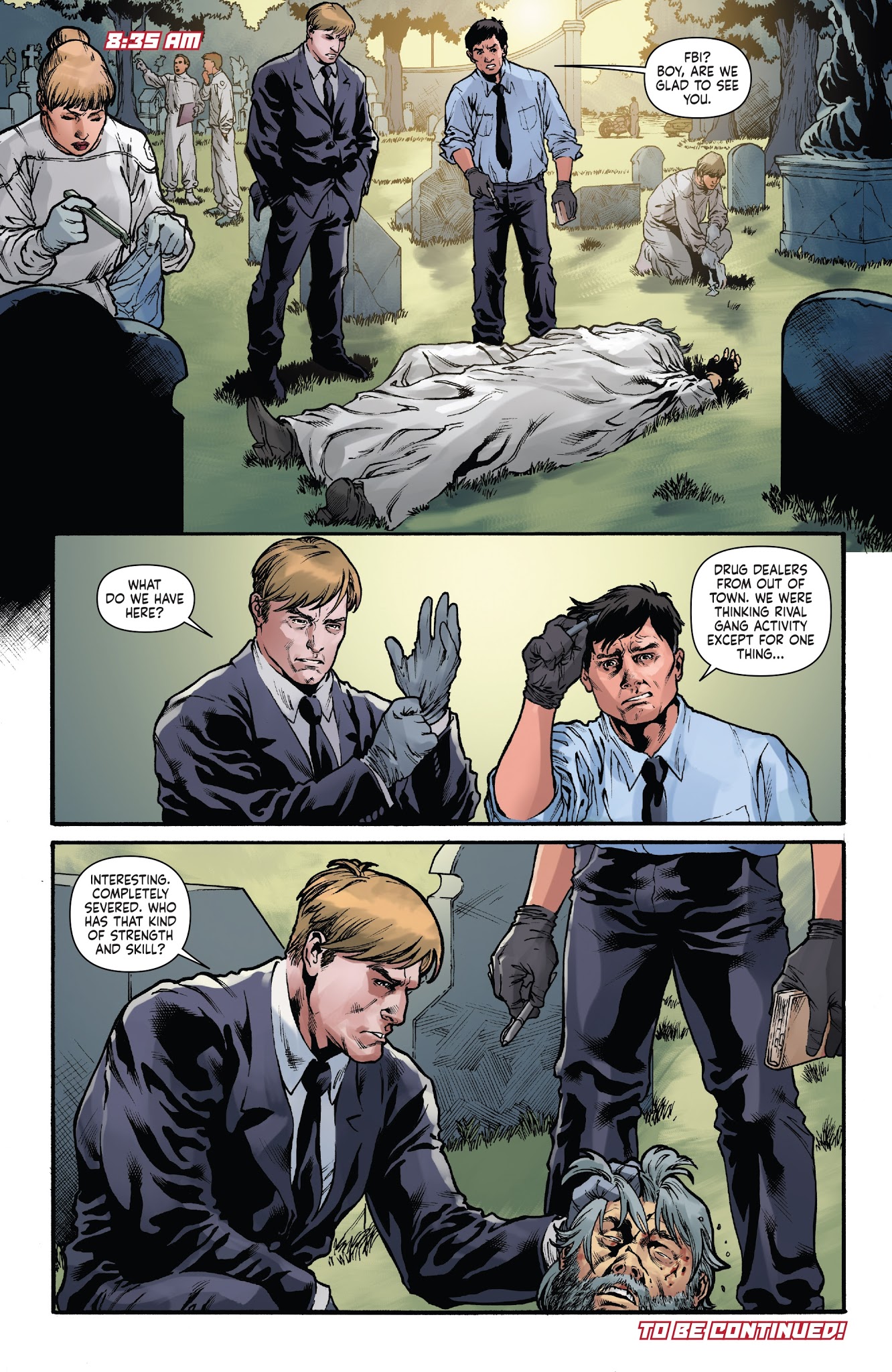 And while I’m on the subject of complaints, reading through this arc and the next one in bulk made me realize there are a few plot threads that seem like they’re setting up future conflicts only to go nowhere. Issue 1 has Sonja notice Kulan Gath’s symbol on some doctors notice Kulan Gath’s symbol on some doctors and it’s implied he has some cabal of followers, but this never comes up again. He’s shown to have followers later on when he invades New York from the past, and the symbol shows up later on some Hyborian followers, but the modern ones from issue 1 aren’t followed up on. The next arc has a plot thread where Sonja has to take down Las Aranhas and gets the FBI on her tail, then after the gang’s taken down the FBI plotline is completely dropped!