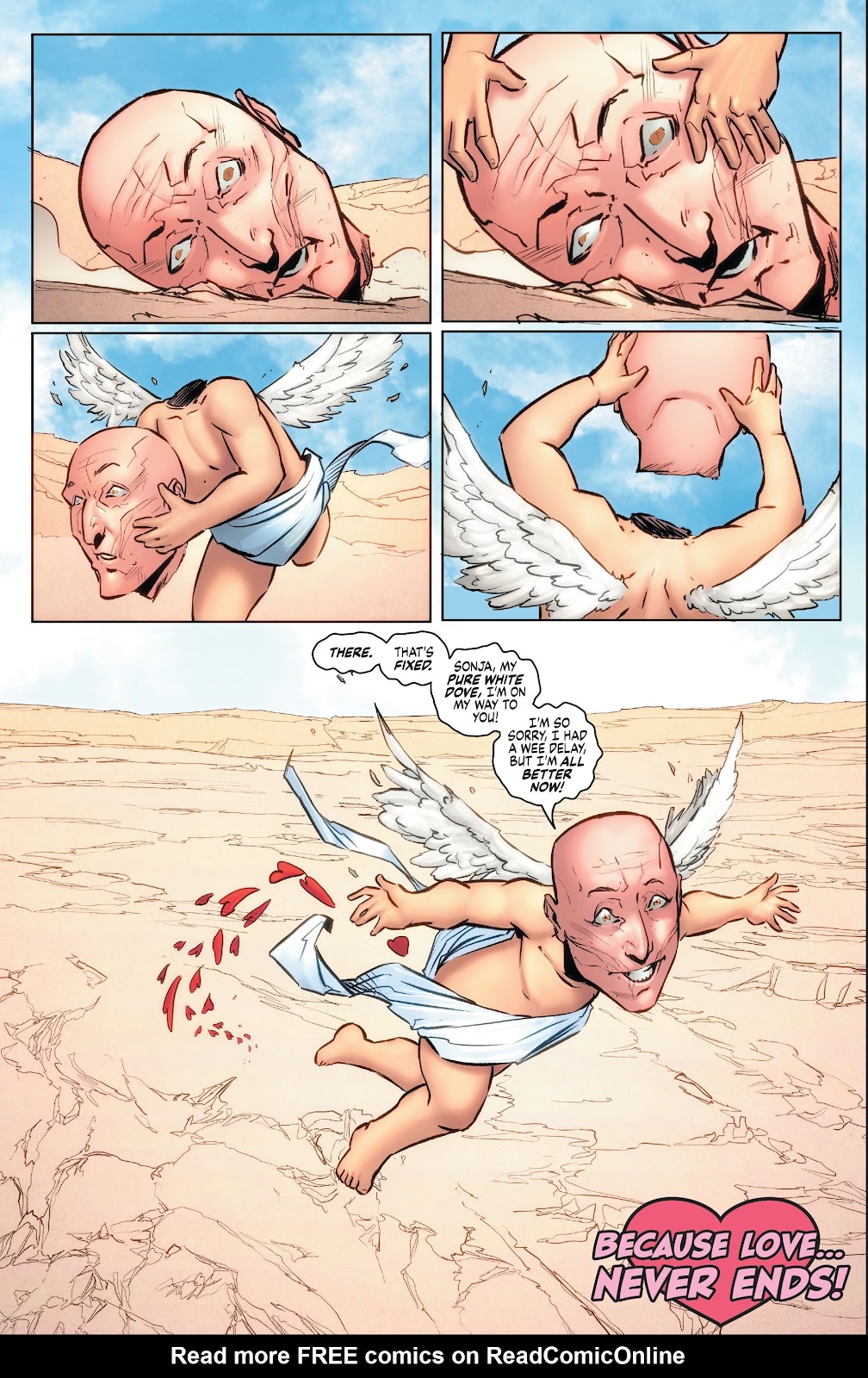 The appearance in the Valentine’s Special was kinda surprising, and the story itself was stupid in a fun way. Seeing him desperately try to get Sonja to reciprocate his love was hilarious, especially when it ended with him dying again just to get back up.