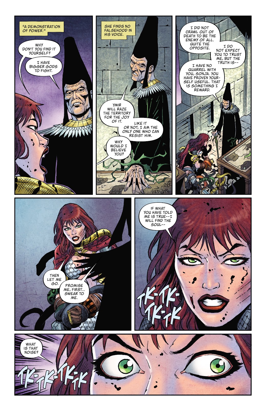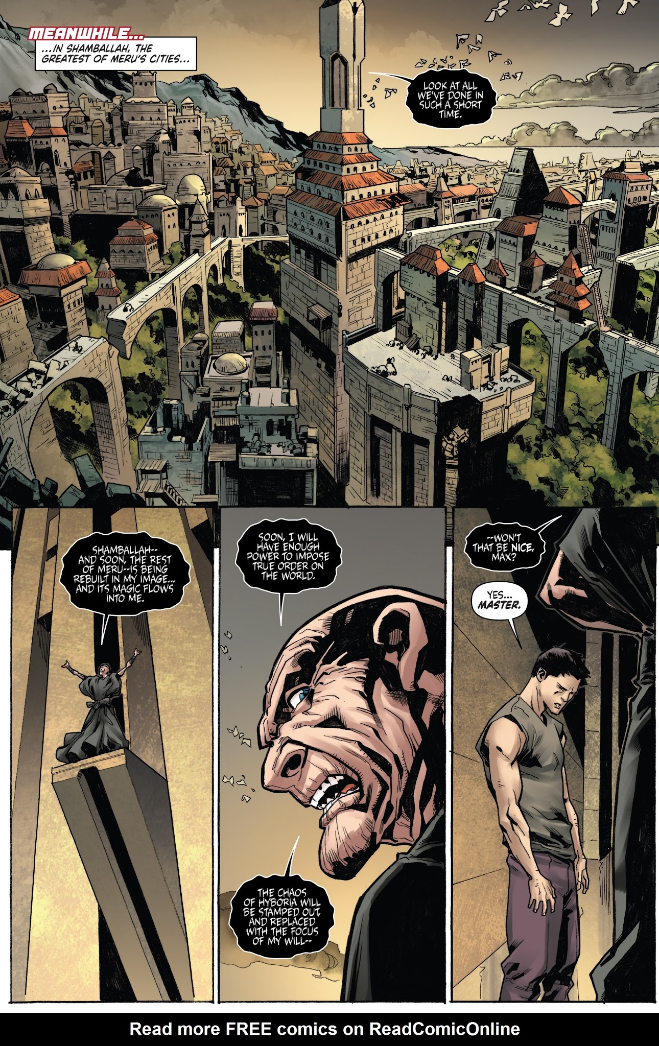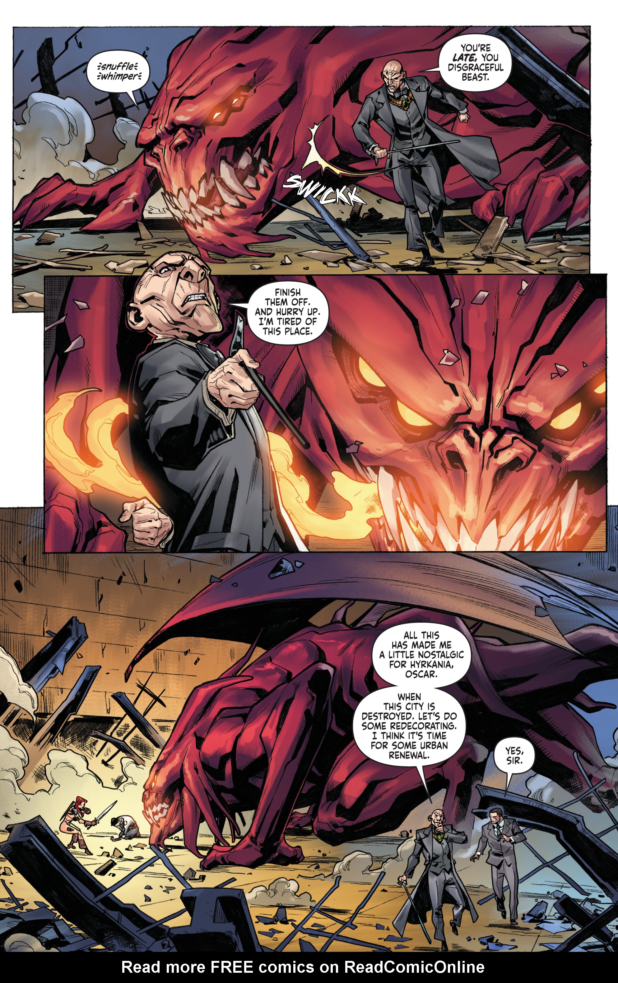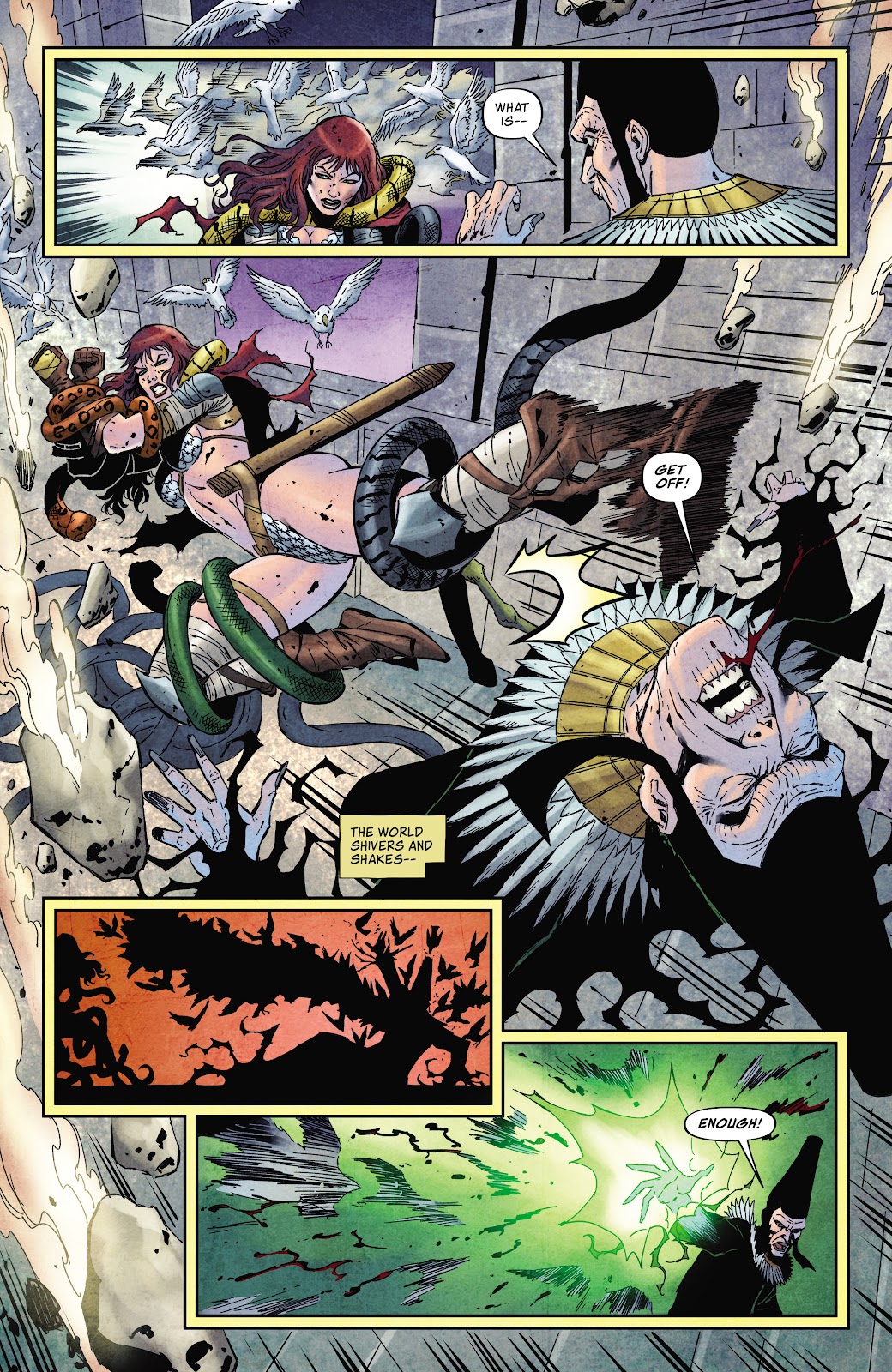 However, the vanguard of his freedom would come from an unexpected place. Seeking revenge for what Gath’s men had done to her family, a reincarnated Red Sonja slew Borat, with his blood acting as a necessary sacrifice to free the sorcerer.