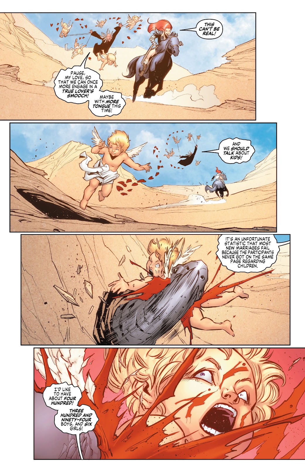 Summoned seven ancient gods from the underworld capable of “rending continents asunder,” and in the Valentine’s Special he was able to conjure a legion of Cupid-like cherubs.