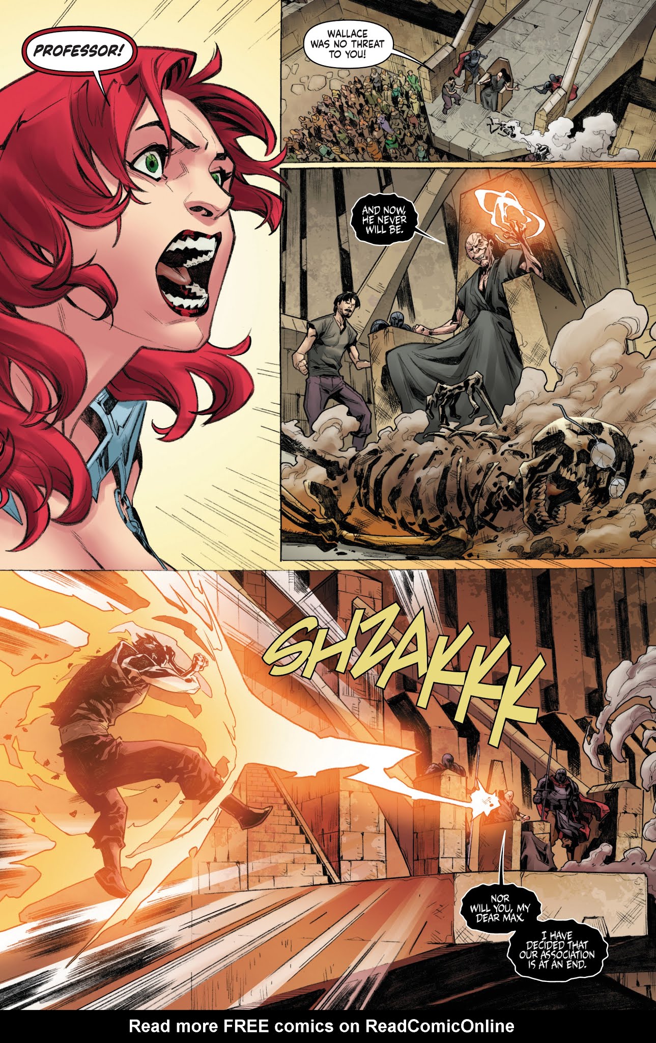 Burns Wallace’s clone alive, reducing it to a skeleton, then blasts Max.