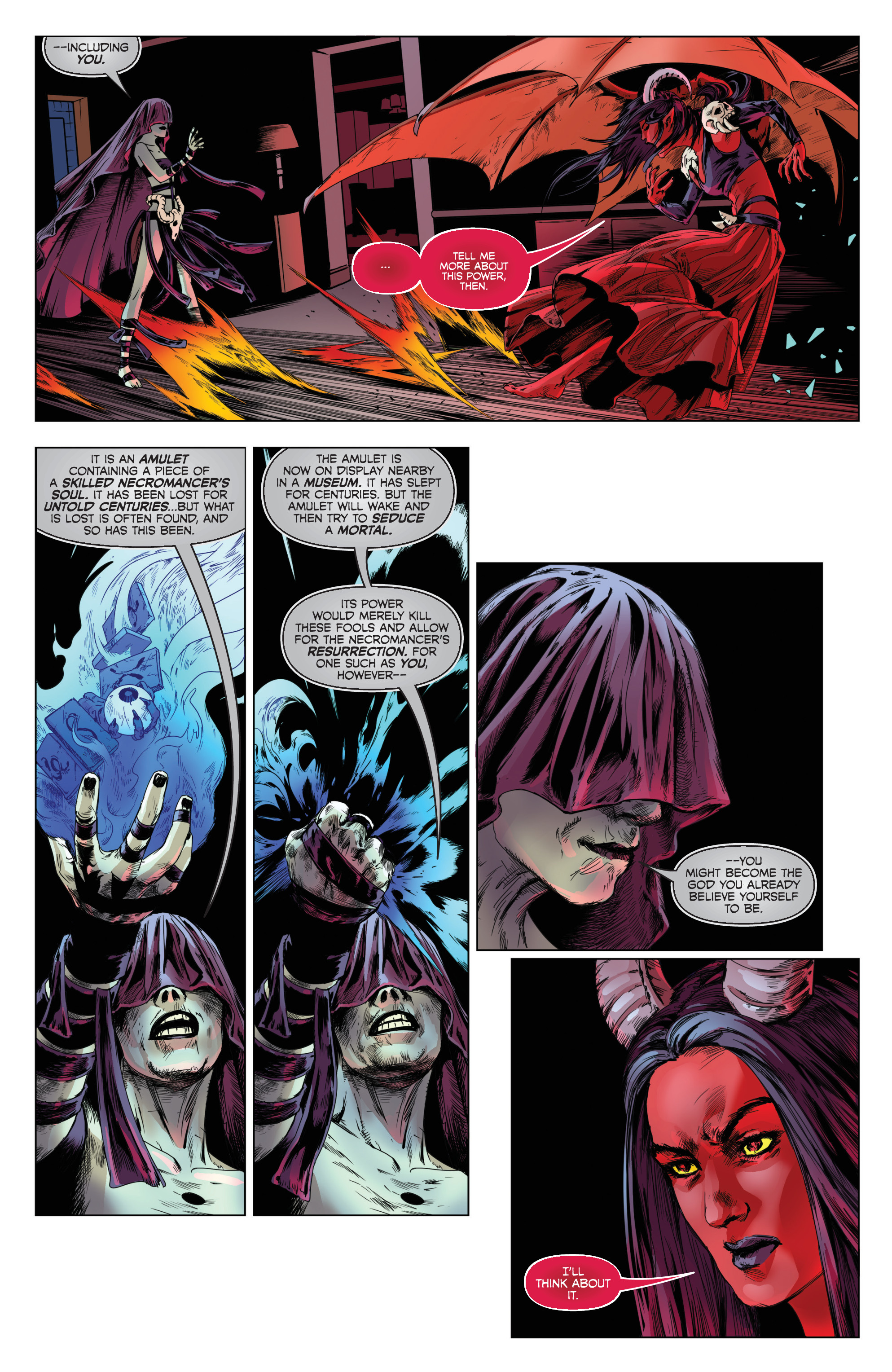When the succubus Purgatori claimed his amulet, Gath was able to resurrect by possessing her. Despite controlling her body, Purgatori’s subconscious is fighting his influence, and she eventually regained control by removing the amulet.