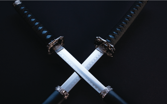 A katana and wakizashi traditionally carried by samurai. They were originally owned by Masamoto, but as signs of his progression into the way of the warrior, Masamoto passed them down to Jack. They contain shafts of pure black lacquer and an inlay of a small golden phoenix emblazoned near the hilt.